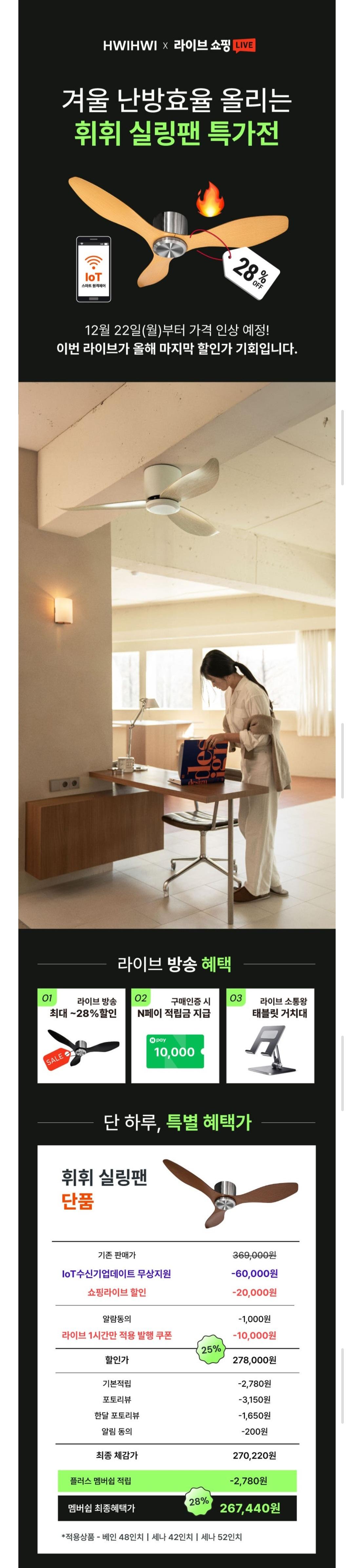 휘휘 실링팬 국내 정발이고 정발이라 IoT 들어가 있습니다.