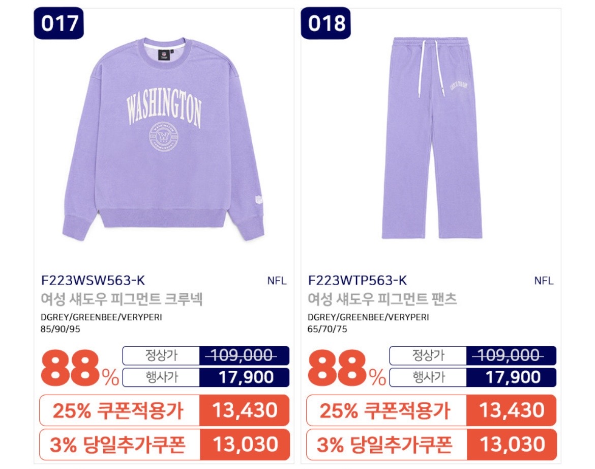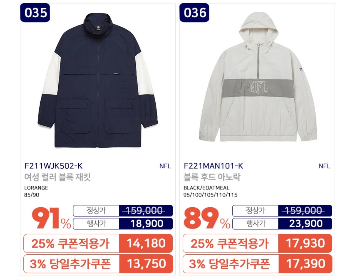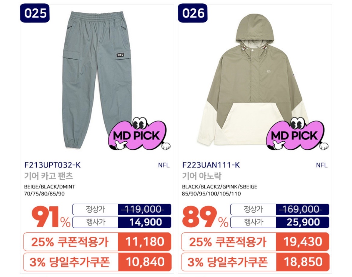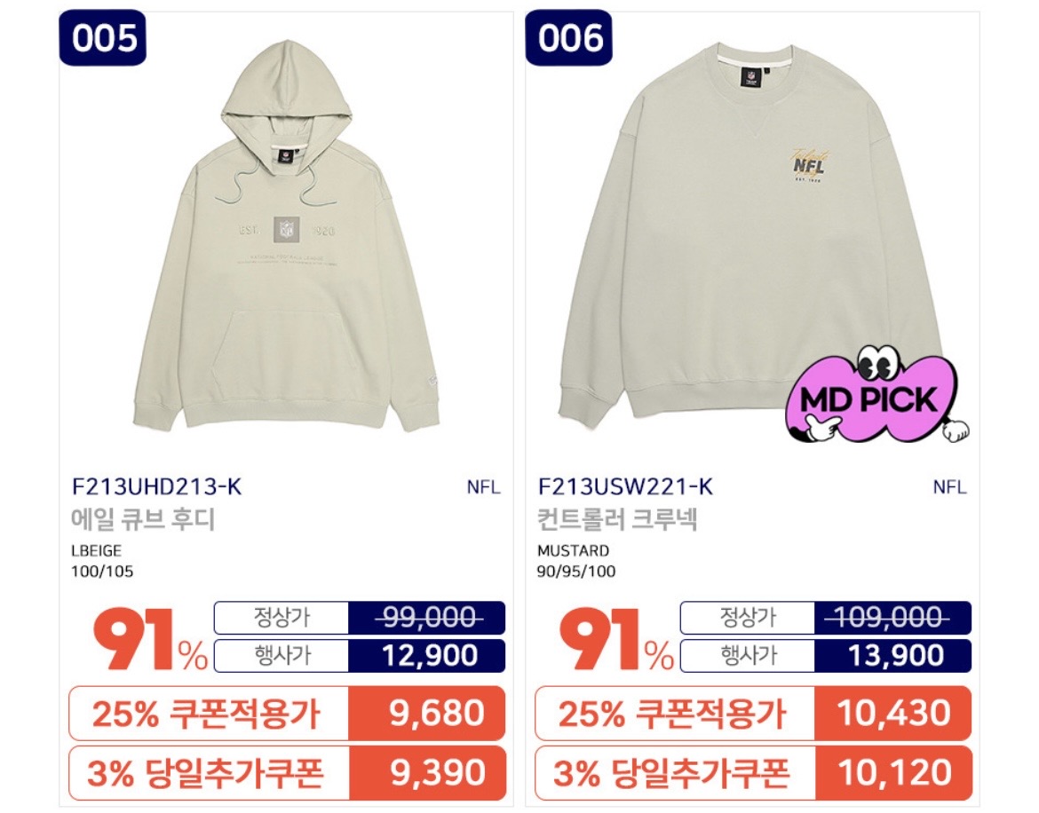 [카카오톡딜] NFL 맨투맨/후드/조거팬츠 등 겨울의류 핫딜! (8,660원~/무배)