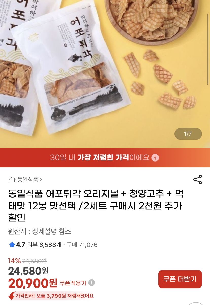 바삭한 식감에 고소/매콤/짭짤한 3가지 맛으로 전부 불호 없는 맛입니다