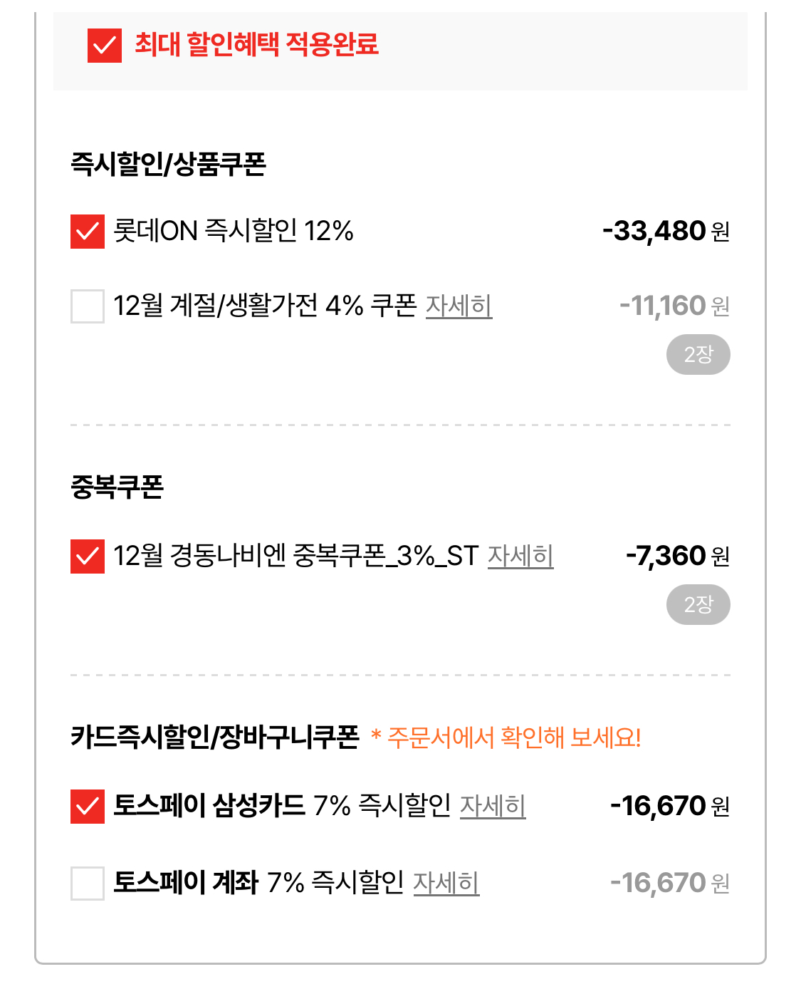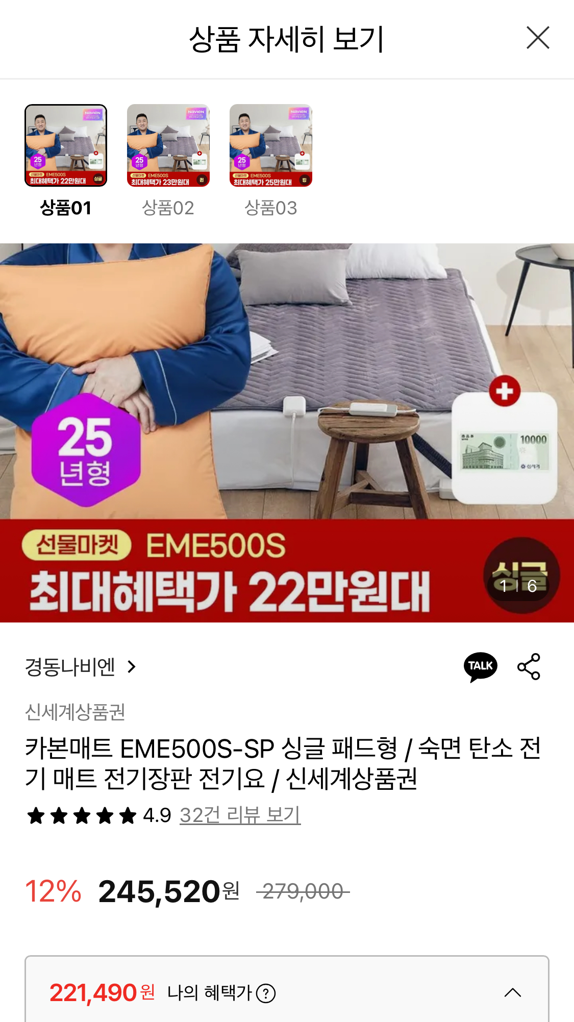 경동나비엔 카본매트 싱글형 12%쿠폰+3% 중복쿠폰+7% 카드까지 하면 22만원대 나옵니다