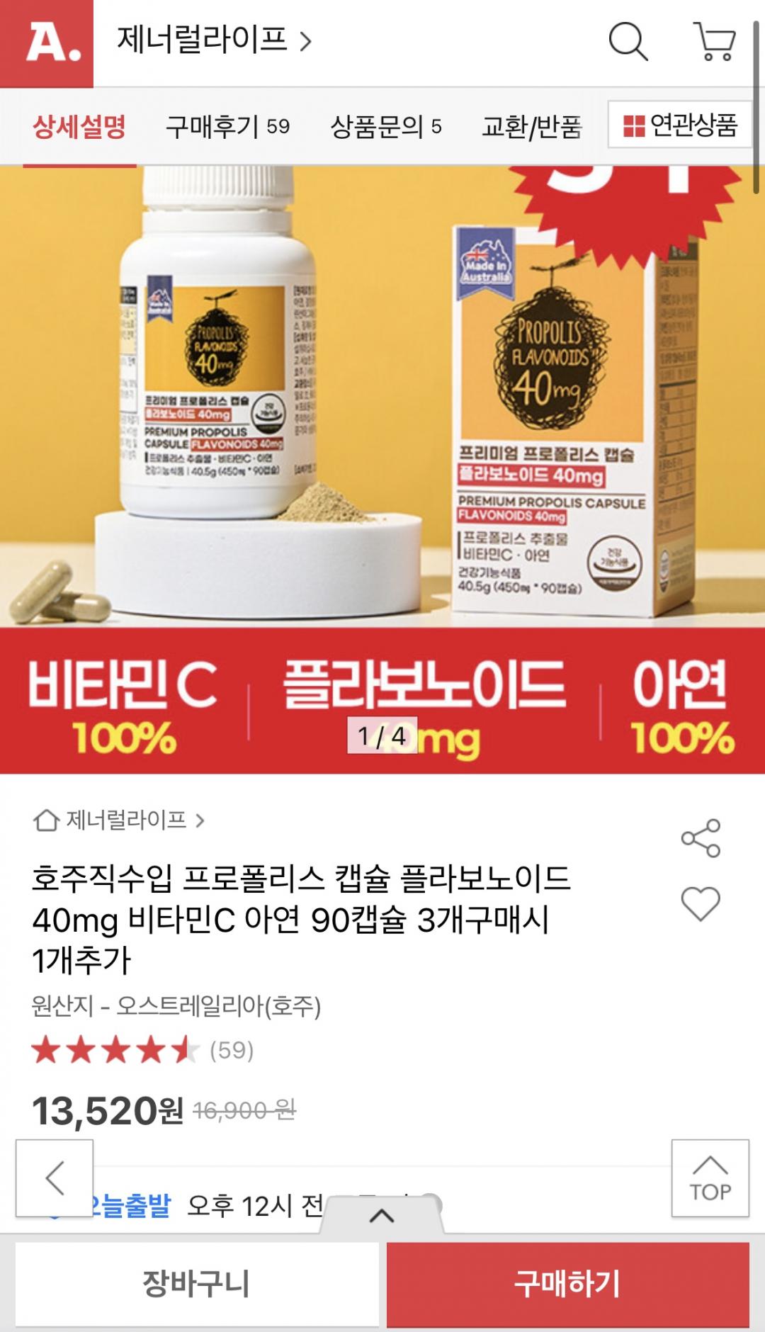 [옥션] 프로폴리스 플라보노이드 40mg 90캡슐 (13,520원 파/무배) > 국내핫딜