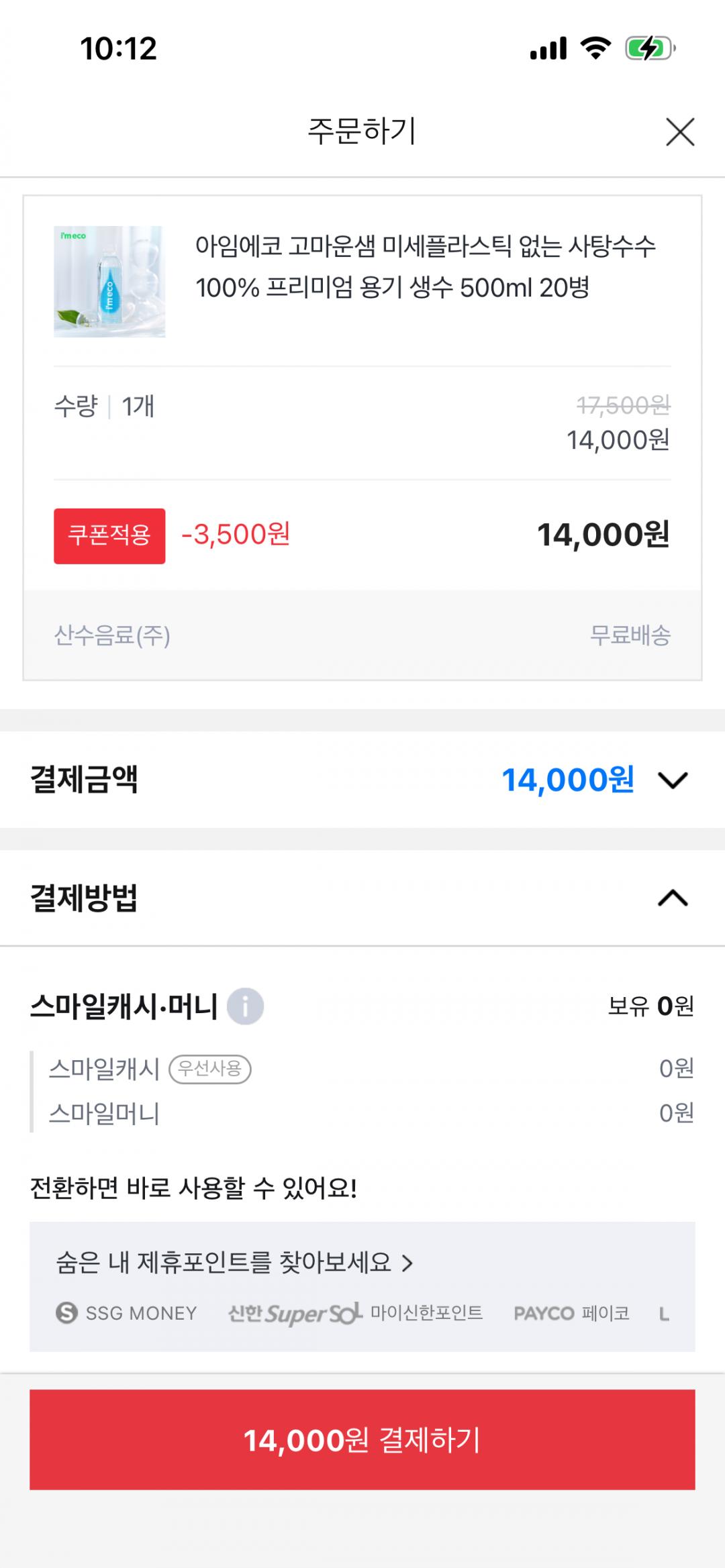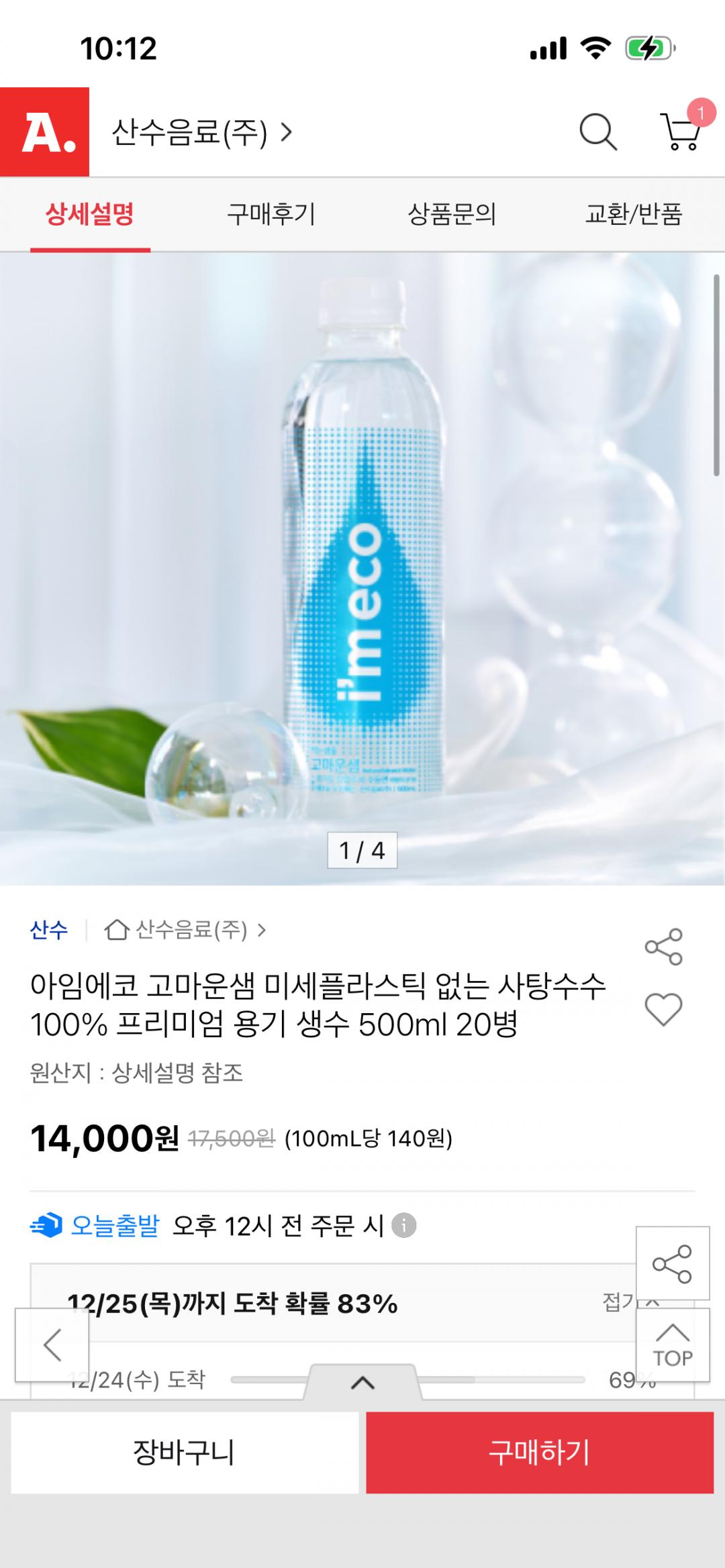 [옥션] 아임에코 미세플라스틱x 사탕수수 용기 생수 500ml * 20병 (14,000원/무료 ) > 국내핫딜