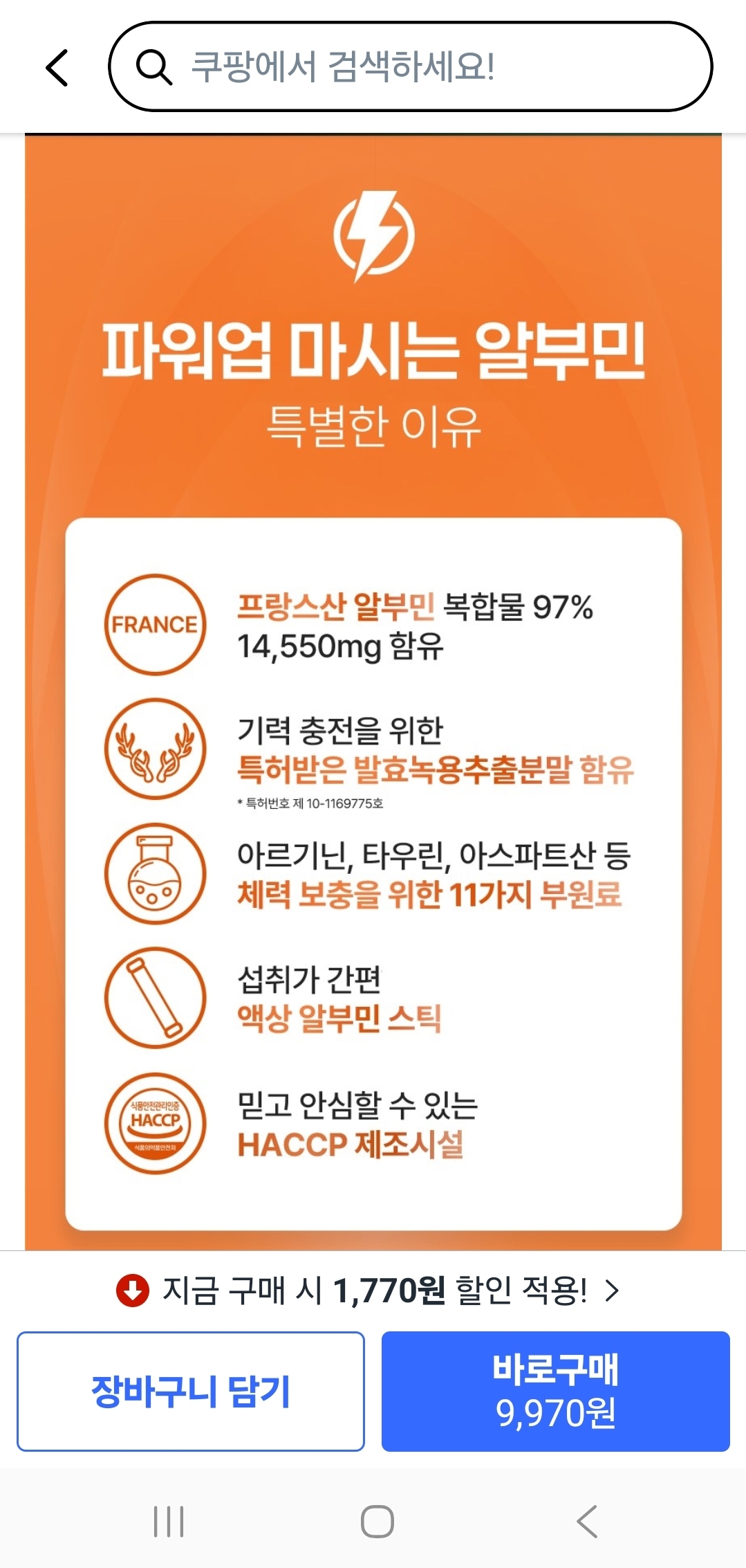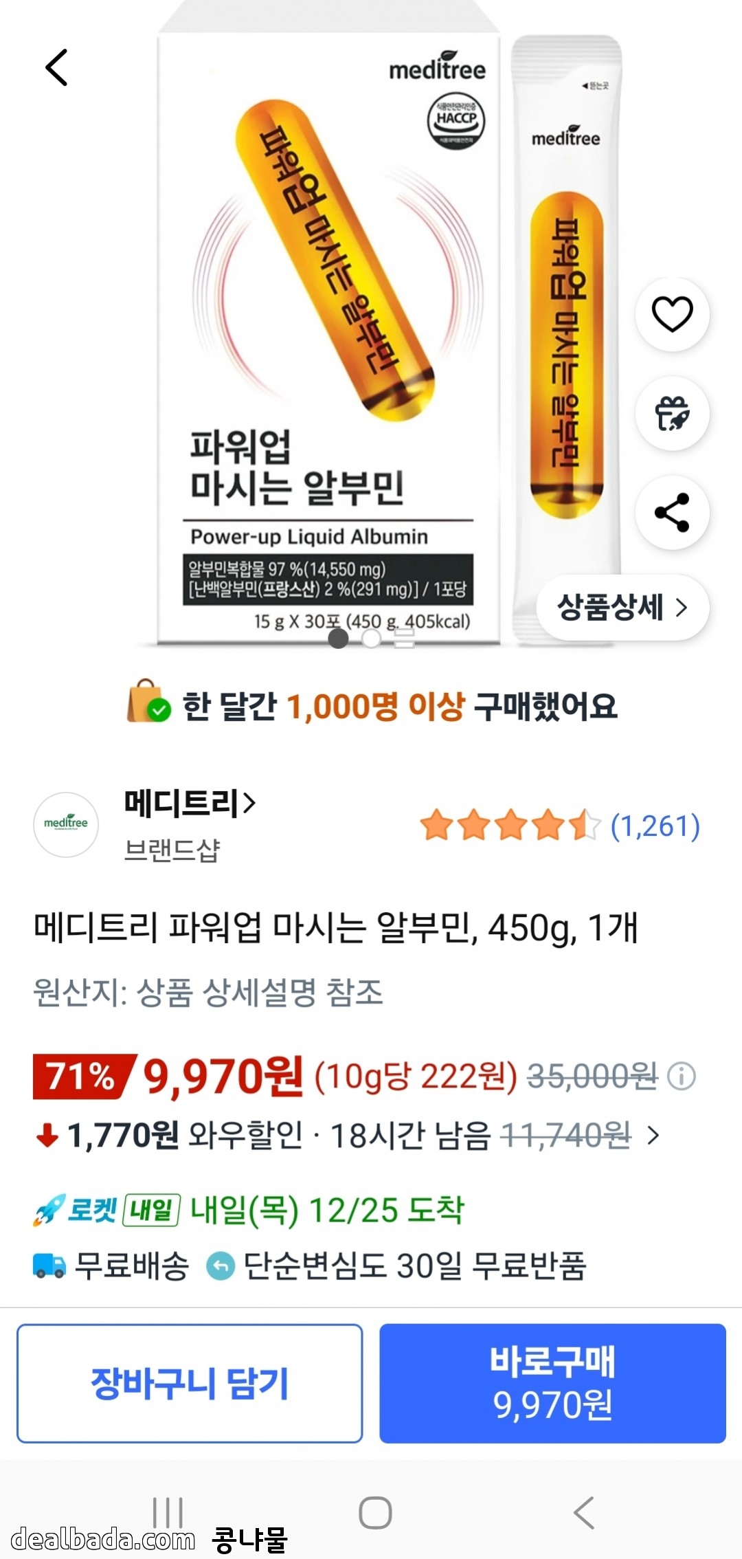 쿠팡) 피로회복 메디트리 알부민 15%할인 (9,970원 / 무료배송) > 국내핫딜