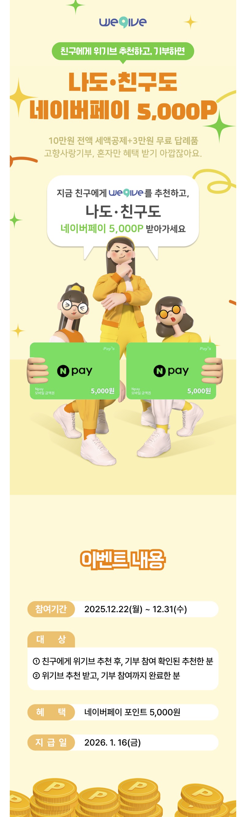 추가로 위기브 추천으로 진행하면 추천인과 추천받은사람 각각 네이버페이 5천원씩 들어와서 좋네요!