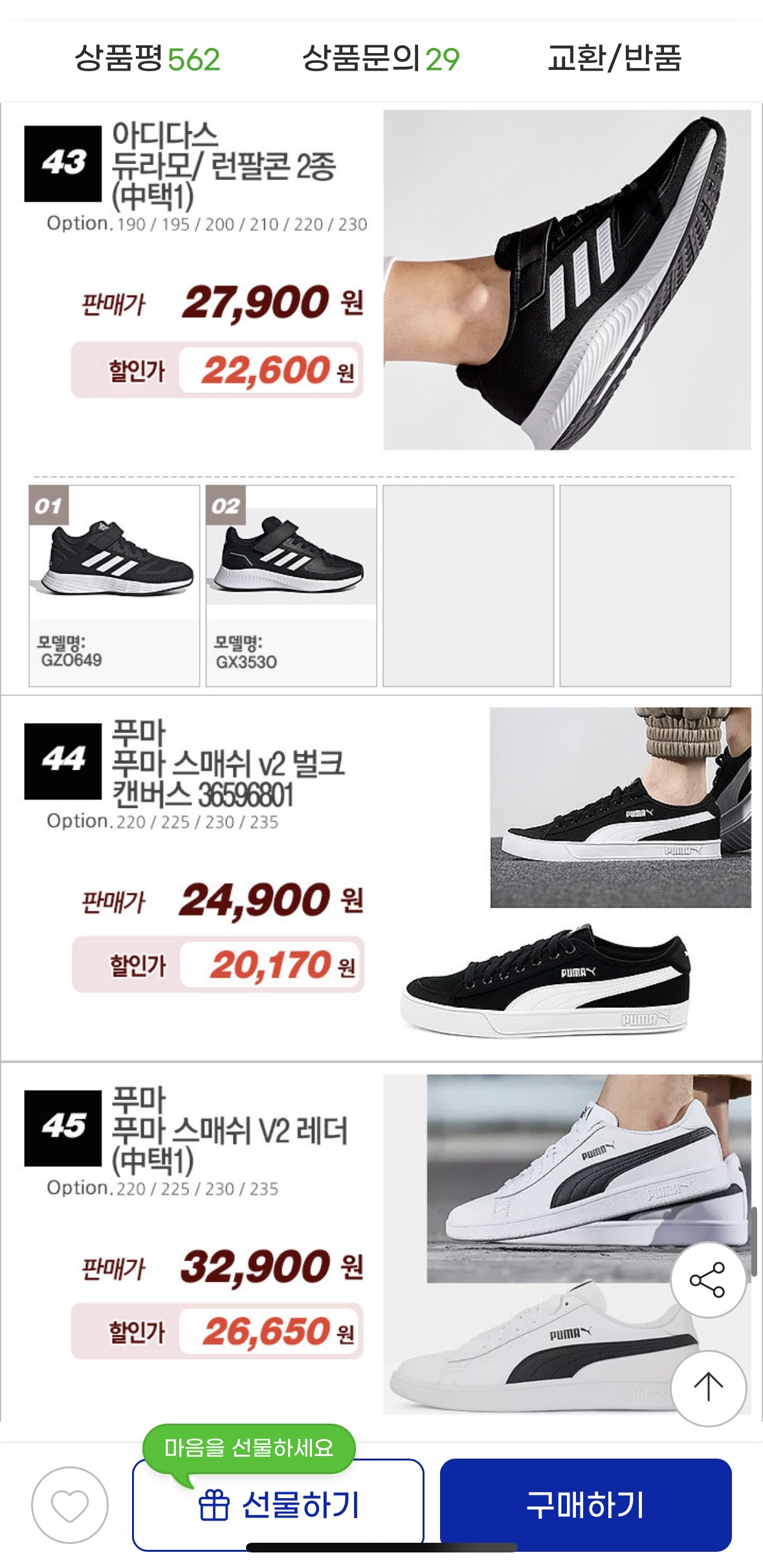 뉴발/아디다스/르까프 등 다른 운동화도 많네요 ㅎ