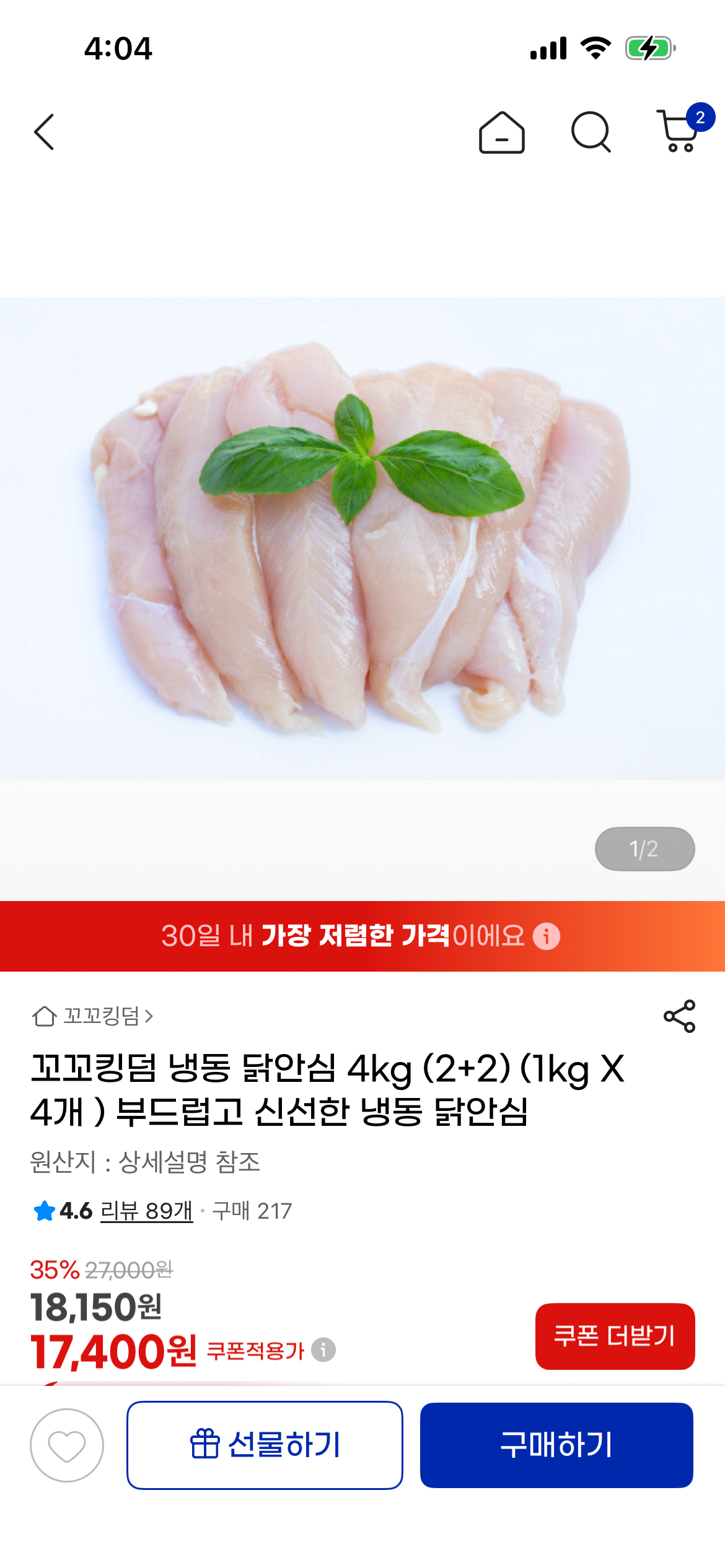 [g마켓]꼬꼬킹덤 냉동 닭안심 4kg (17,400원/무료) > 국내핫딜