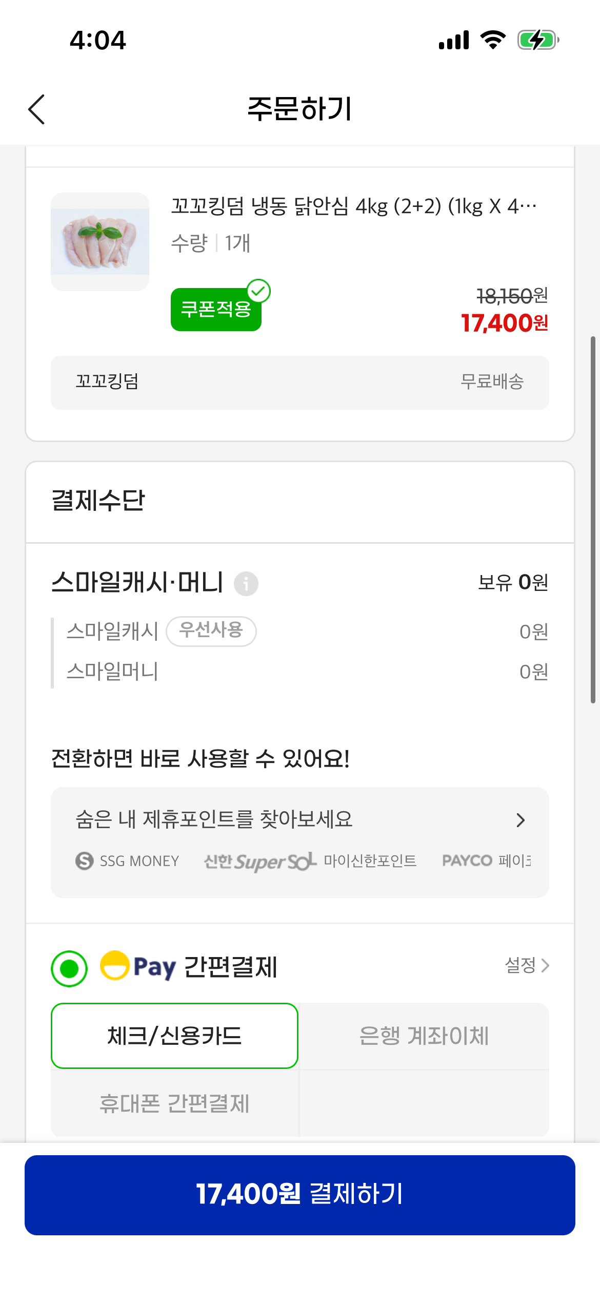 [g마켓]꼬꼬킹덤 냉동 닭안심 4kg (17,400원/무료)