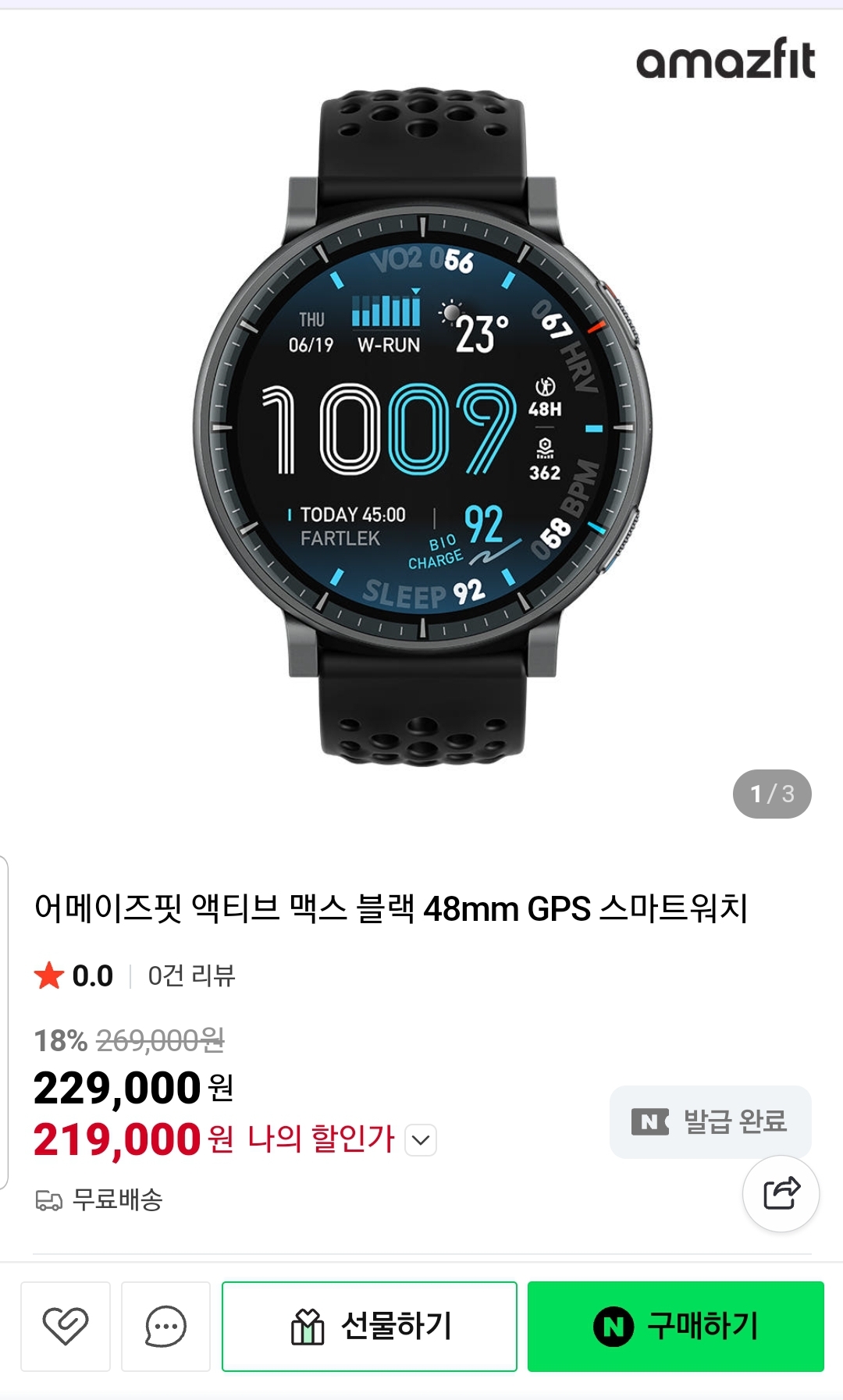 배터리 25일이라 충전스트레스 거의 없고 무게도 39.5g이라 손목이나 운동 중 부담도 없는 수준입니다.