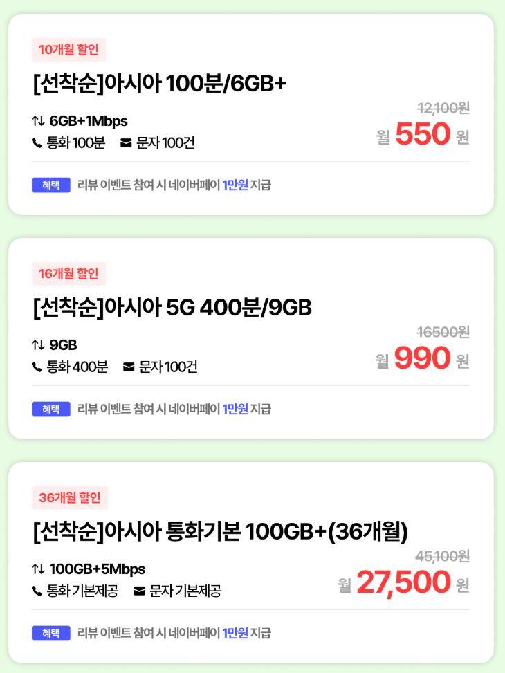 [아시아모바일] 데이터100GB+5Mbps (36개월동안 월 27,500원/배송비 무료) > 국내핫딜
