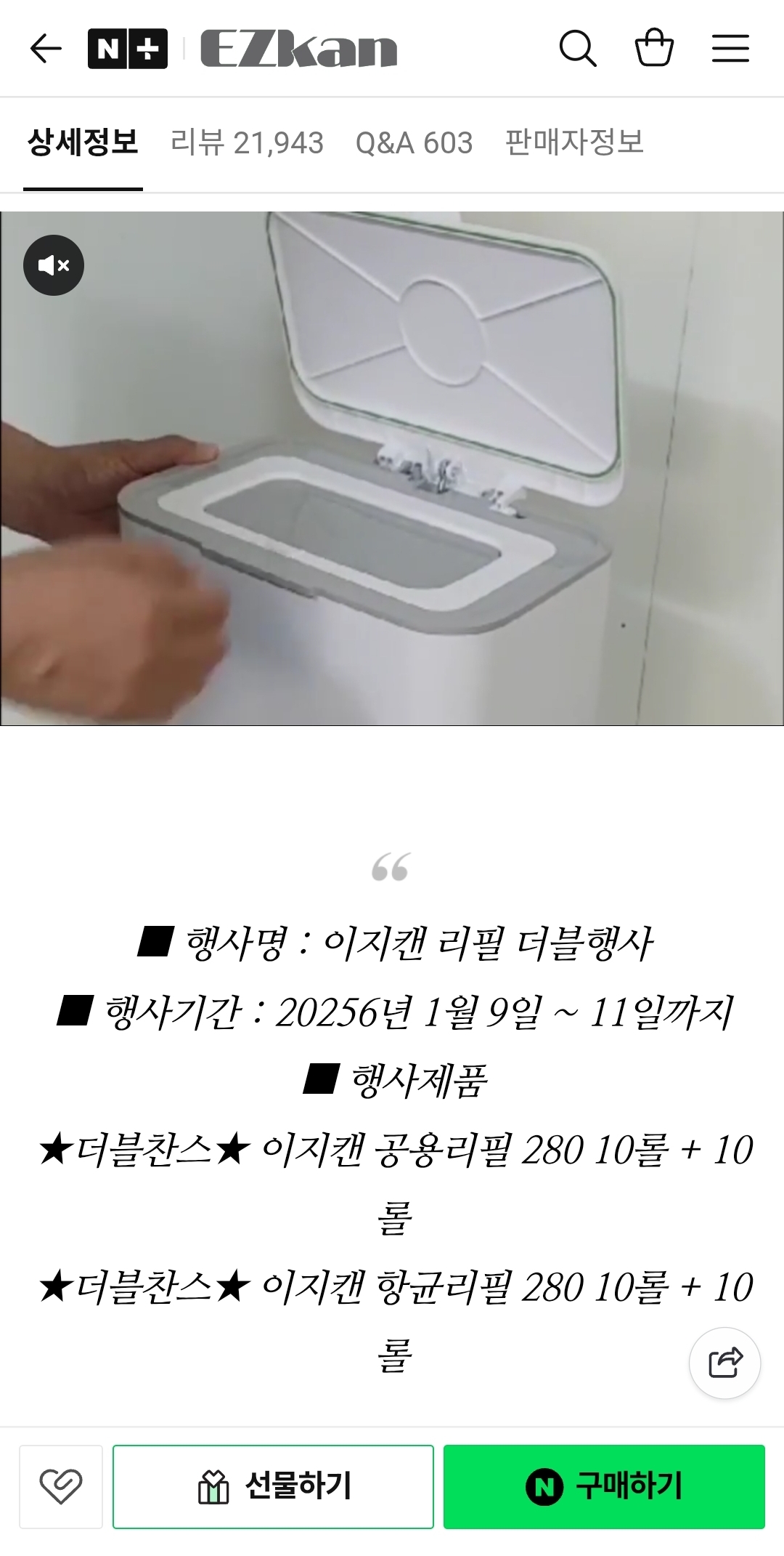 [네이버]이지캔 공용리필 280 10롤+10롤 18200원 / 무료