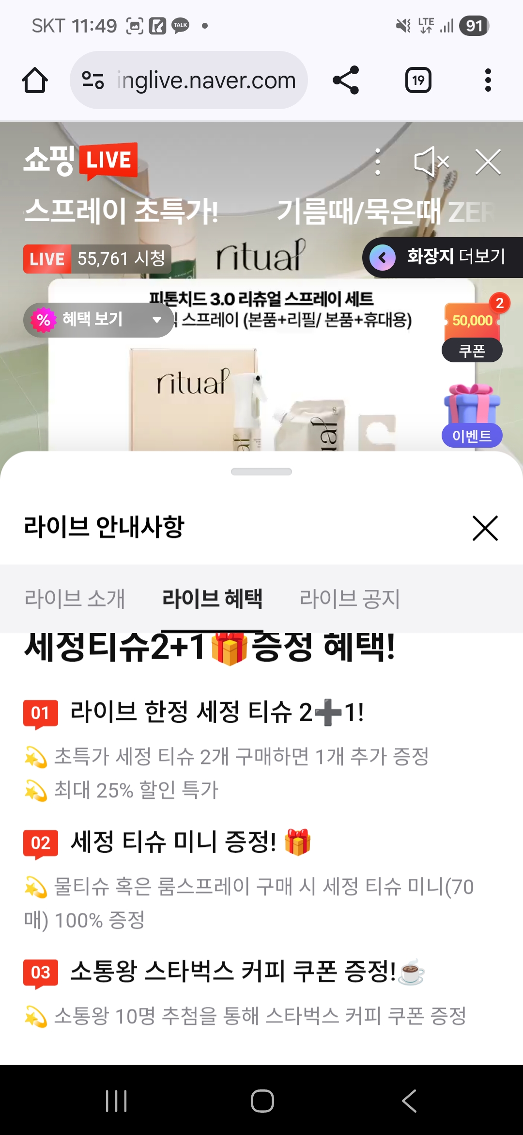 리츄얼 올해 첫 라이브인데 가격/혜택 좋네요.
