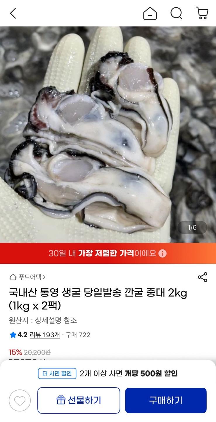 [지마켓] 국내산 통영 깐 생굴 2kg (17,170원/무배) > 국내핫딜