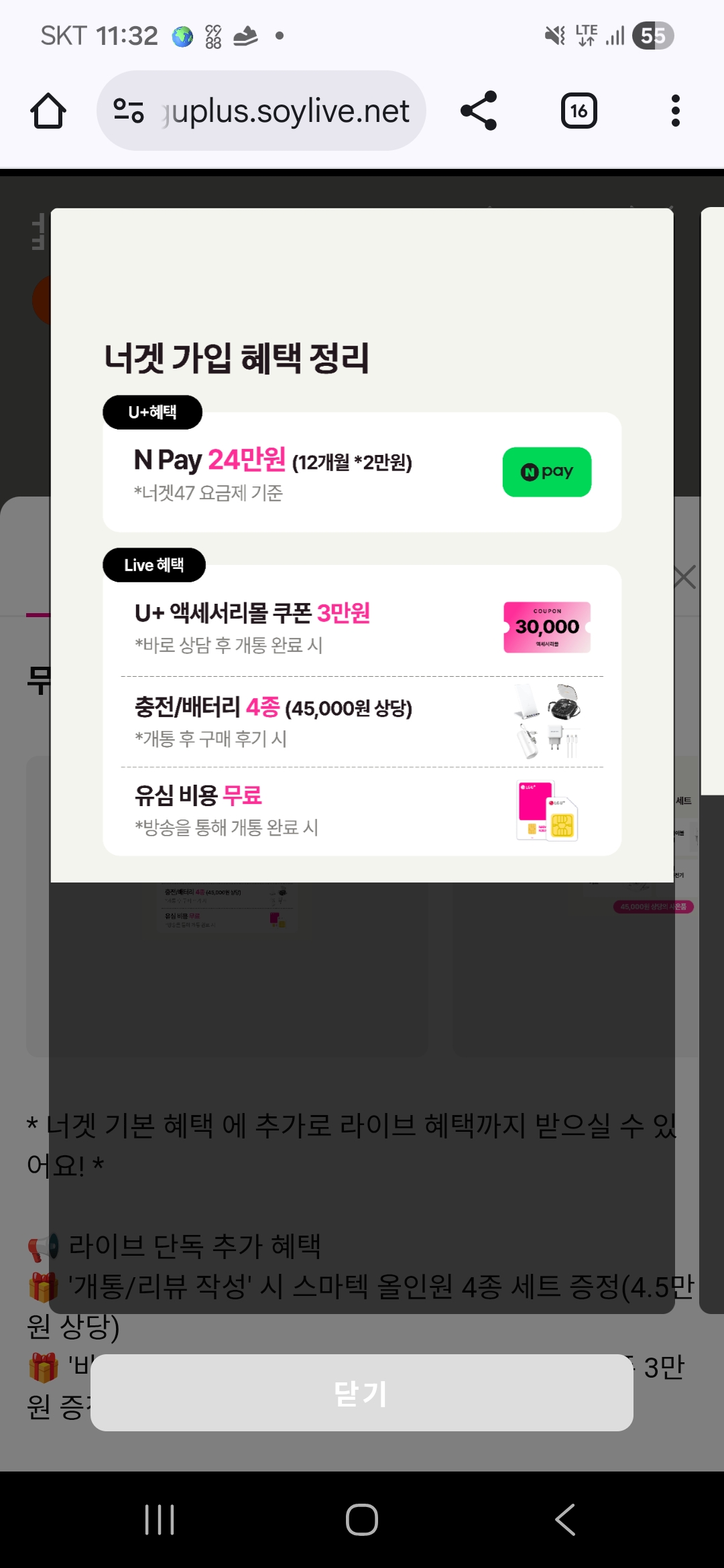 무약정이라 12개월만 써도 되고 유심비 무료, 3만쿠폰, 충전기 세트 추가로 지급하네요.
