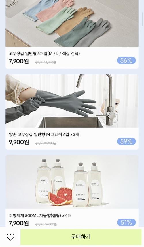 고무장갑 5개입 7,900원 (사이즈·컬러 선택 가능)