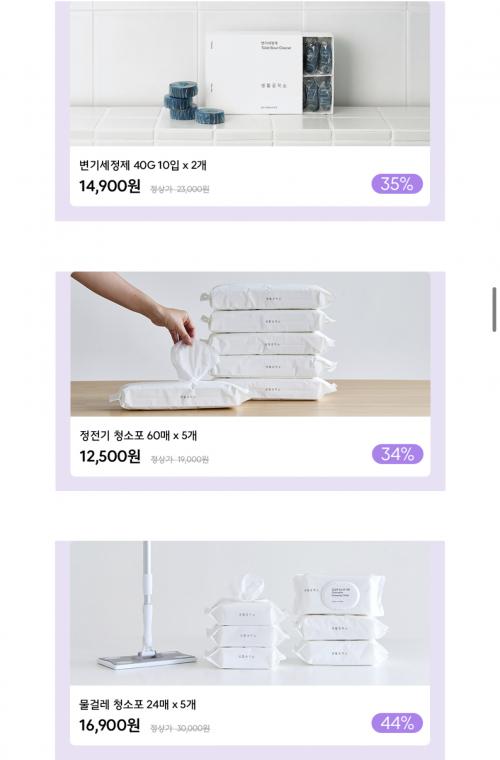 주방세제, 고무장갑, 키친타올, 제습제, 칫솔, 캡슐세제까지 생활용품 전반적으로 가격 내려간 편이에요