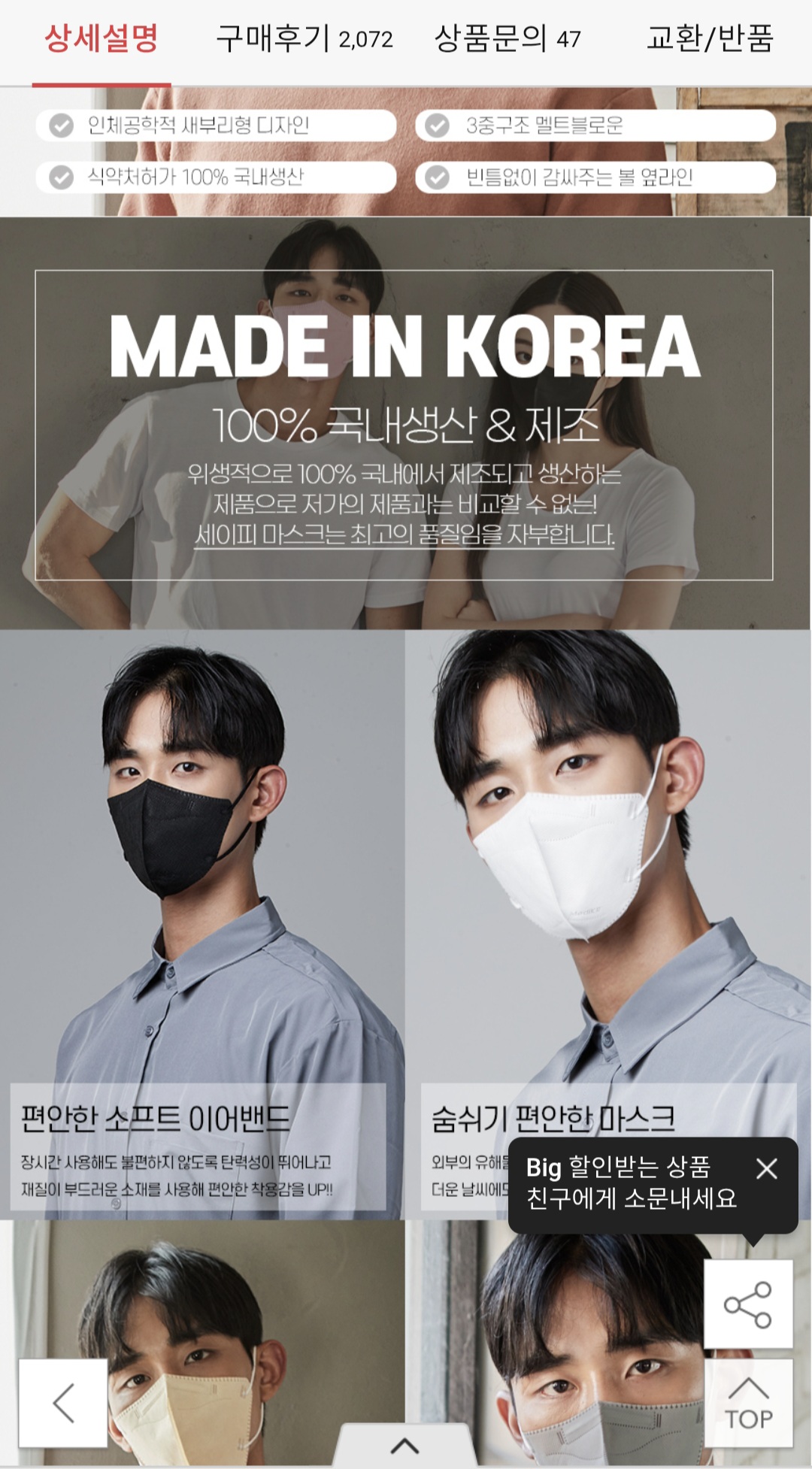 [옥션] 국산 kf94 새부리형 소 중 대형100매 (7480/무료) > 국내핫딜