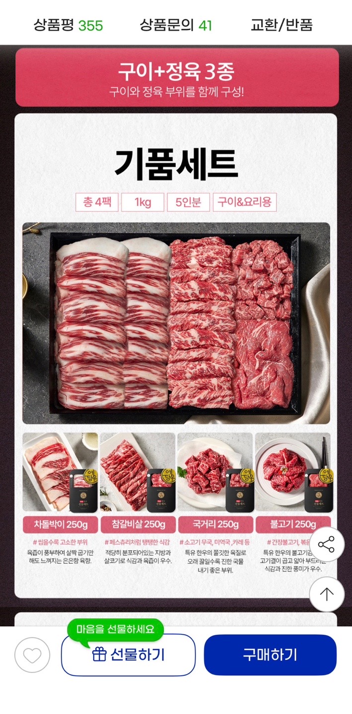 프리미엄 한우 구이 세트 8만원대 무배 가성비 좋습니다