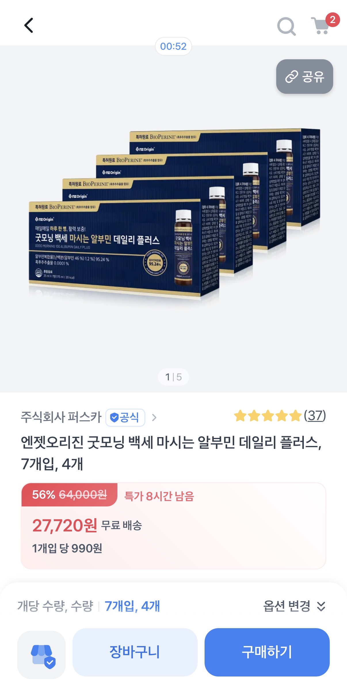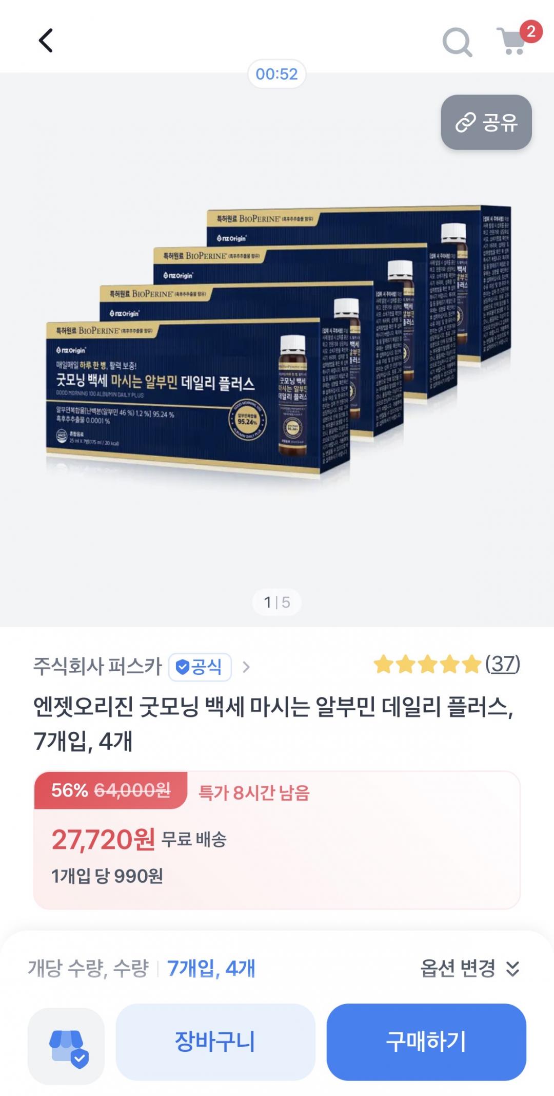 [롯데온] 굿모닝 백세 마시는 알부민 액상 28병 (7개입 4박스) + 2병 (27,720원/무배) > 국내핫딜