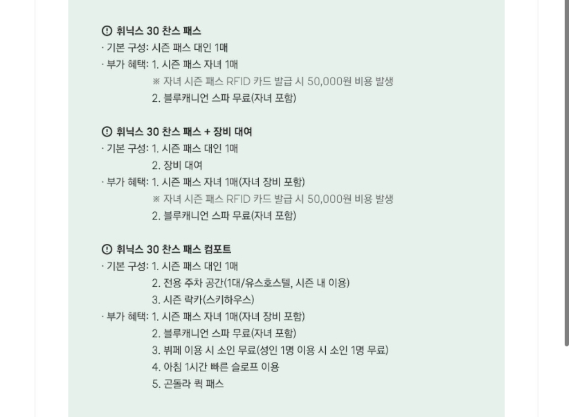 시즌권이라고 하기엔 리프트금액과 비슷한데 자녀구성이 진짜 좋은편입니다.
