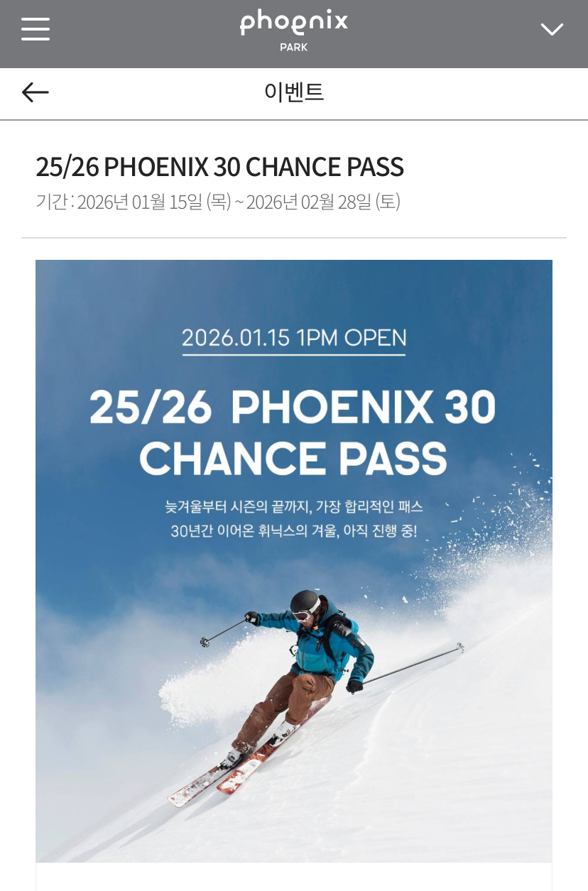 [휘닉스] 평창 휘닉스 30 찬스 패스 시즌권 (200,000원/무료)