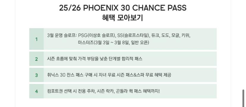 가성비를 챙기신다면 역대급 시즌권입니다.