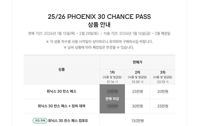 [휘닉스] 평창 휘닉스 30 찬스 패스 시즌권 (200,000원/무료) > 국내핫딜