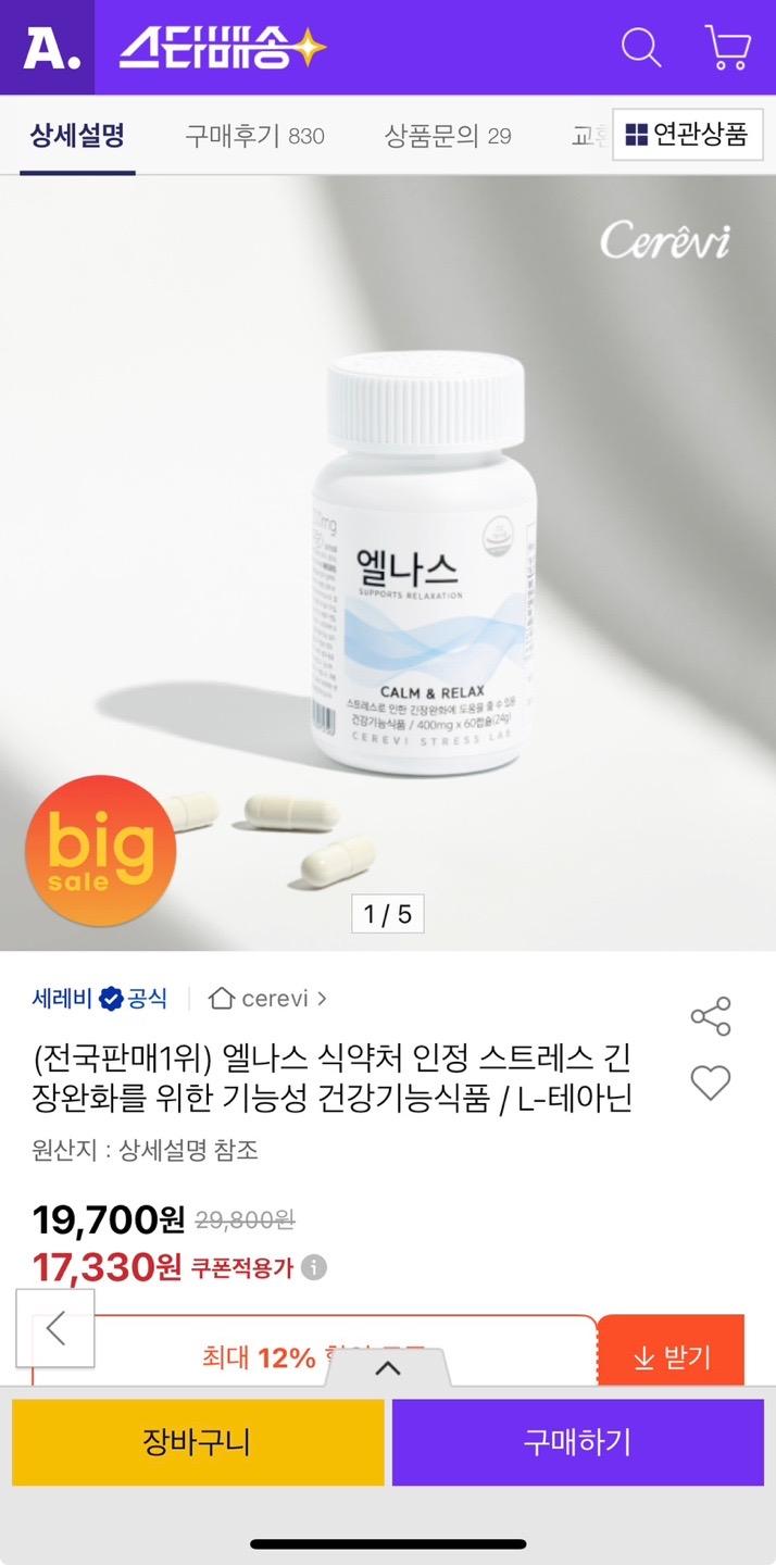 [옥션] 엘나스 스트레스 긴장완화 기능성 건강기능식품 (17,330원/무배)