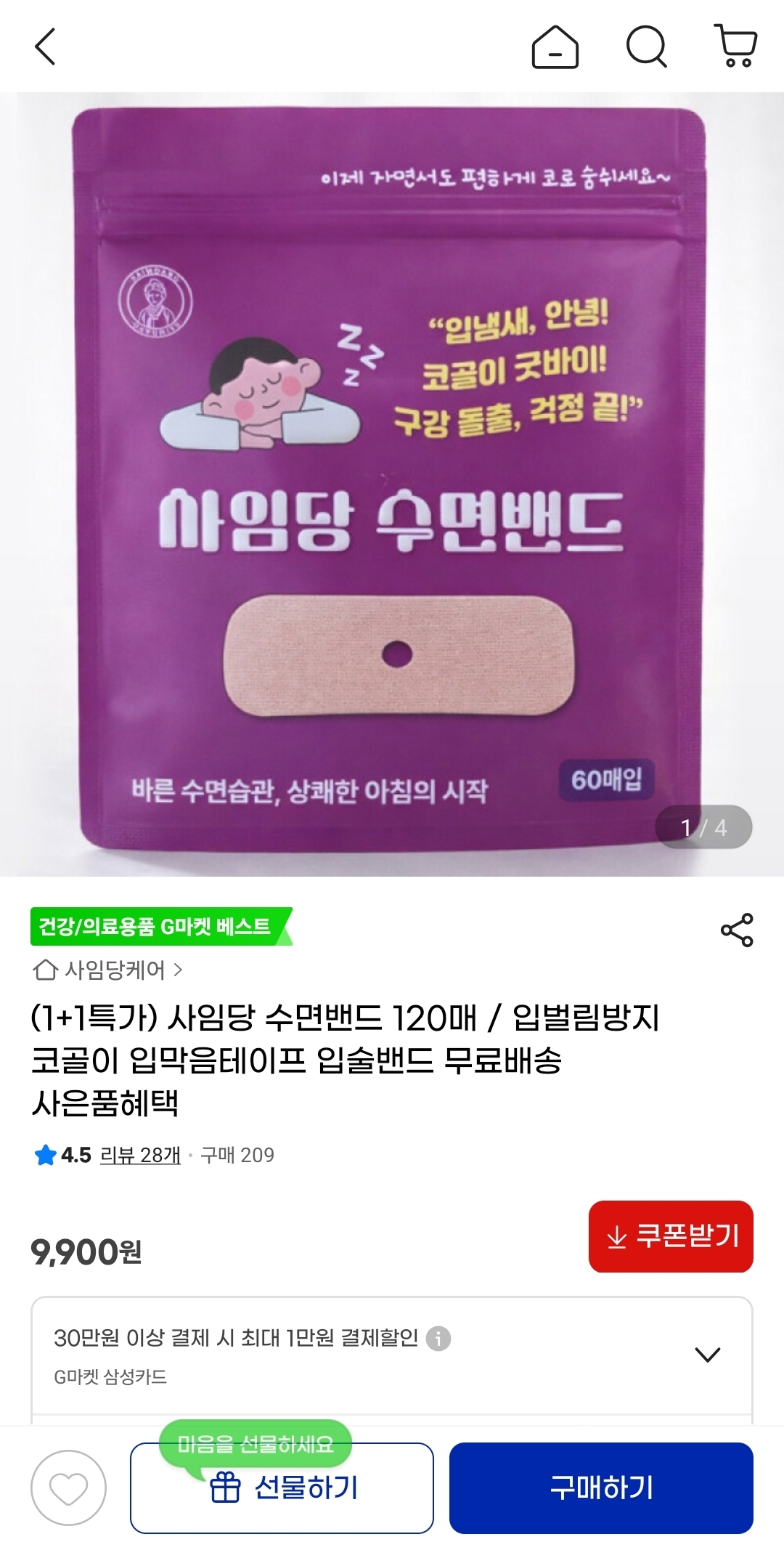 사임당 수면밴드 120매 구성으로 9,900원 무배입니다