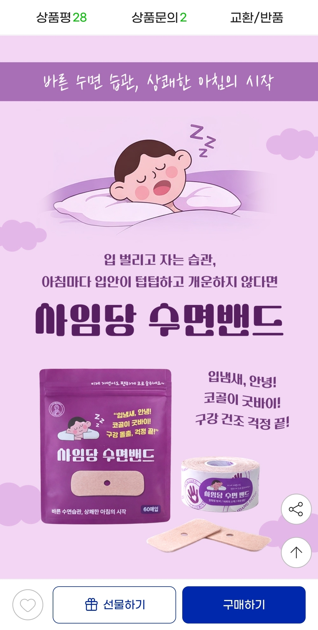 입벌림 습관 교정이나 코골이 완화용으로 가볍게 써보기 무난해요