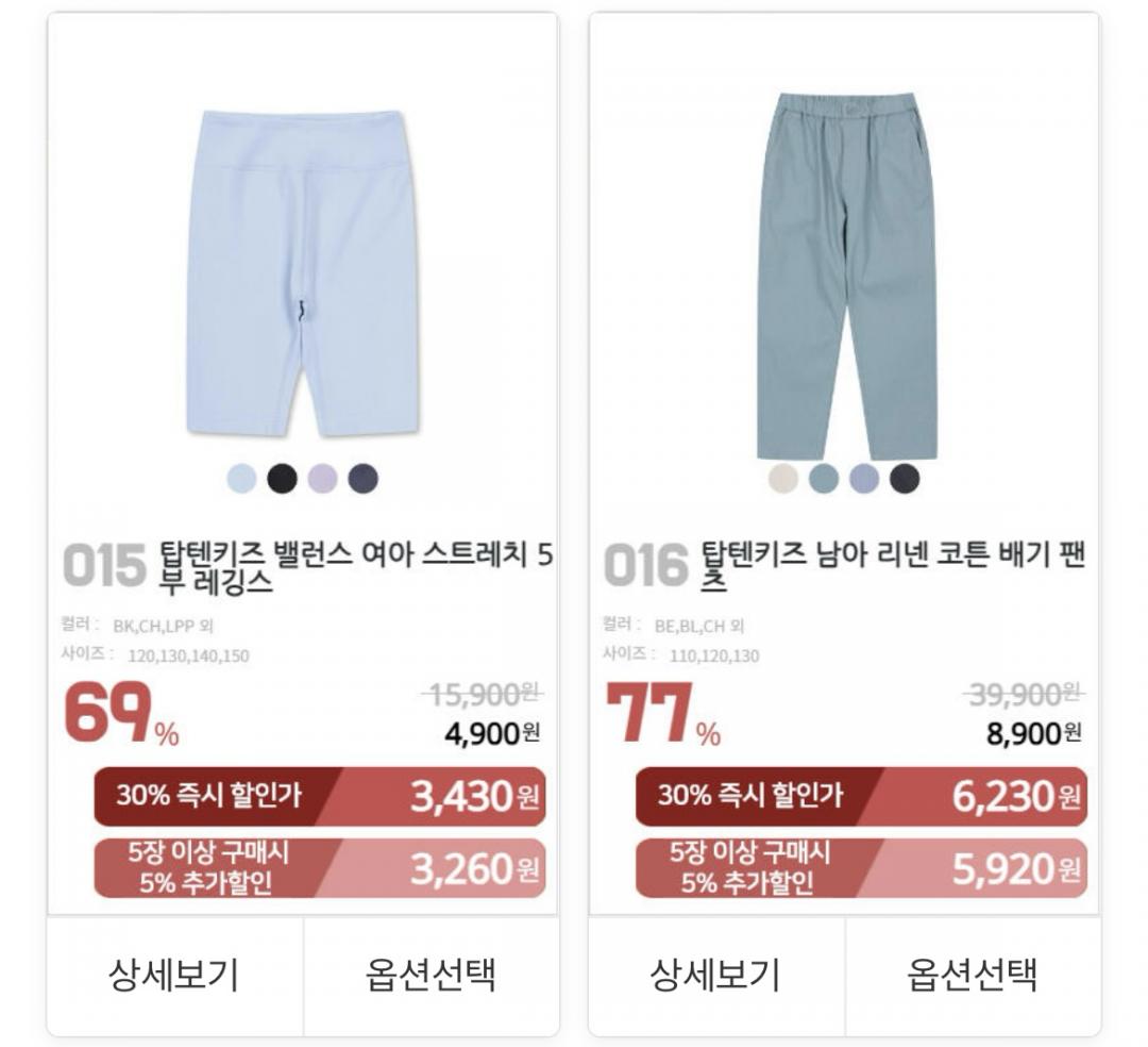 기본 반팔티, 바지 등 괜찮은거 많아요
