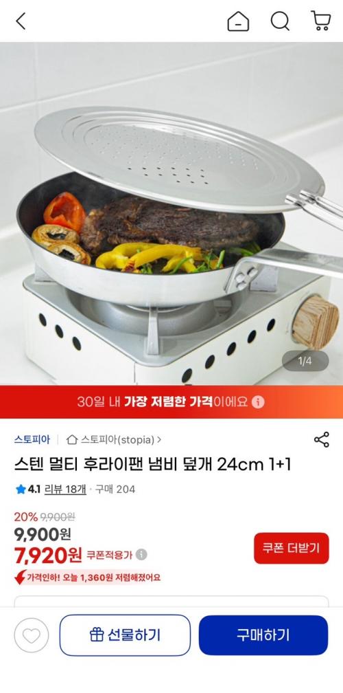 [지마켓] 스텐 멀티 후라이팬 냄비 덮개 24cm 1+1 (7,920원/무배) > 국내핫딜