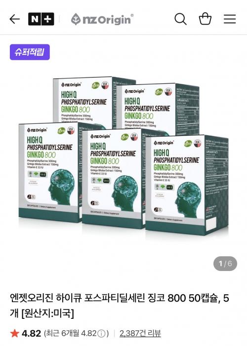 [네이버] 엔젯오리진 하이큐 포스파티딜세린 징코 800 50캡슐 5개 (96,900원/무료)