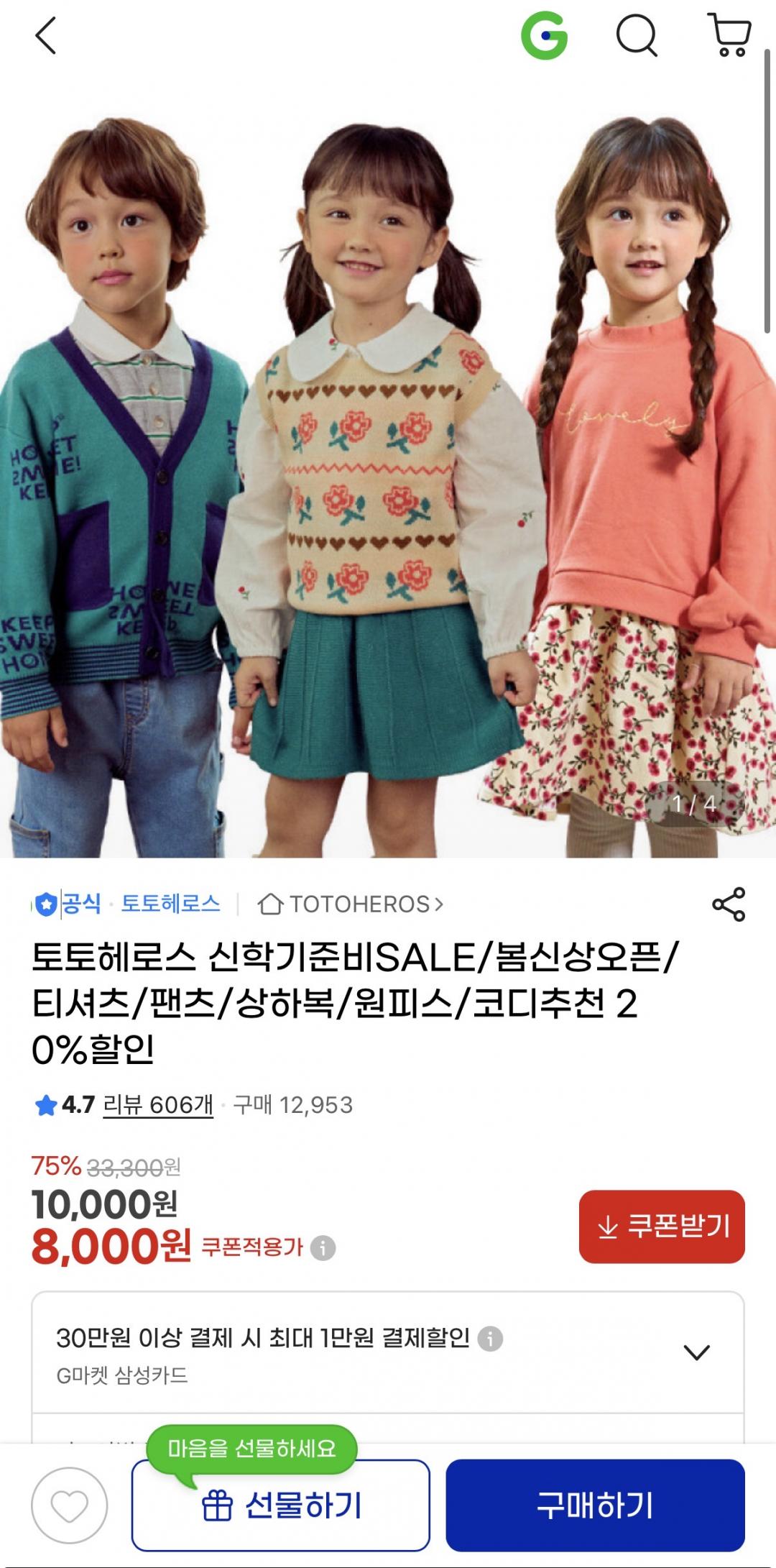 지마켓)토토헤로스 신학기준비SALE/봄신상오픈/티셔츠/팬츠/상하복/원피스 20%할인 8,000원~ > 국내핫딜