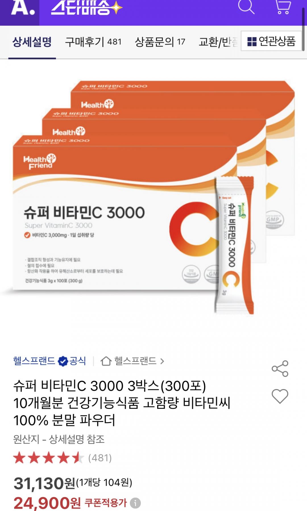 비타민c 함량 3,000 mg이라 1일 최대치 고햠량이고