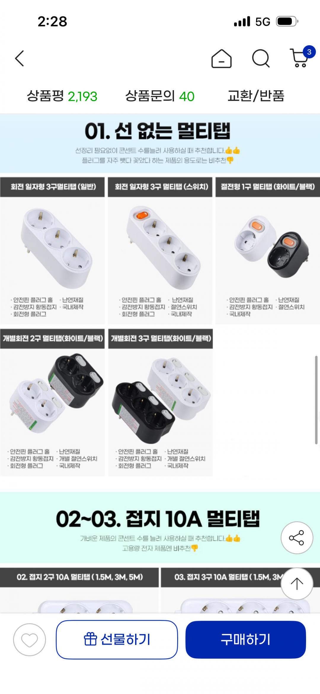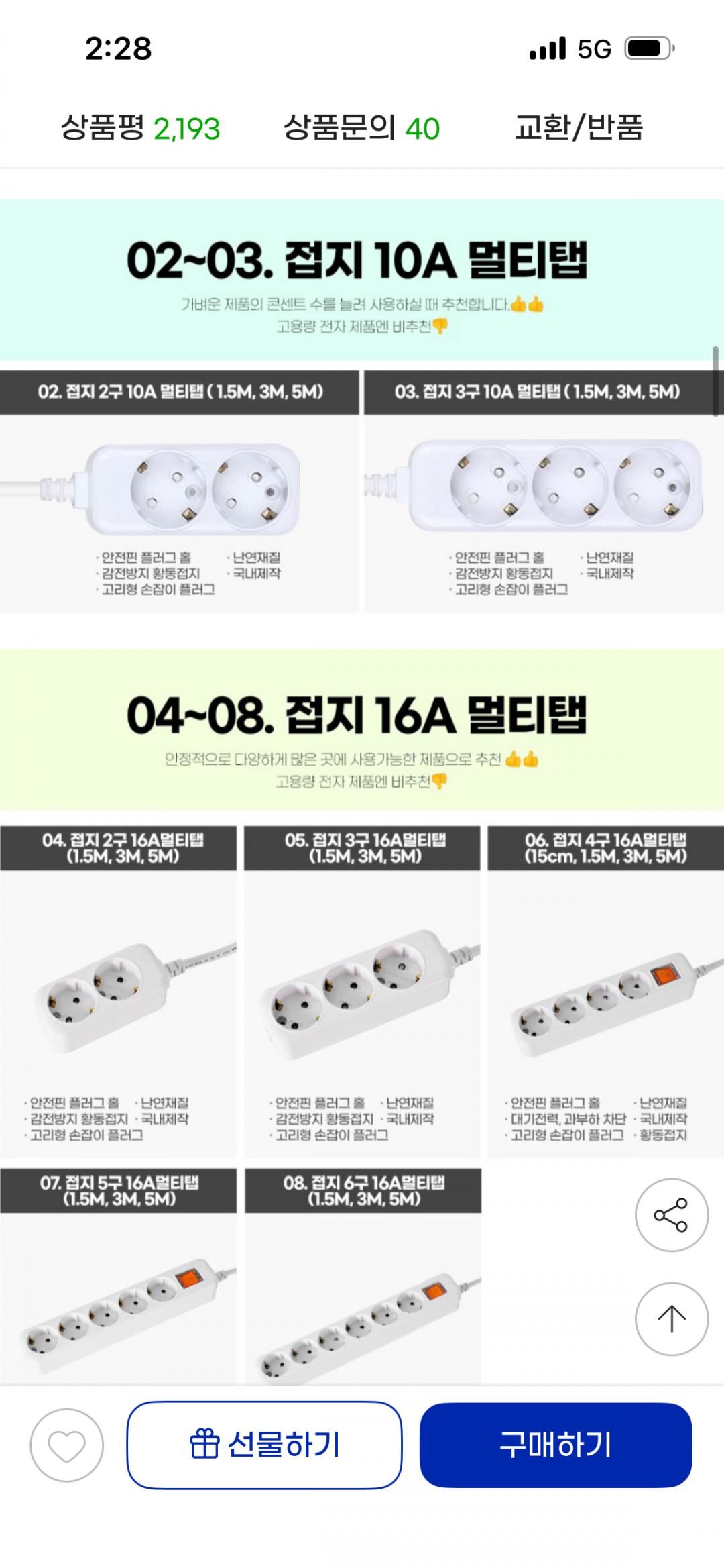 [지마켓] 현대멀티탭 안전 접지 개별 2구 3구 4구 5구 6구 멀티탭 (7,900원/3,000)