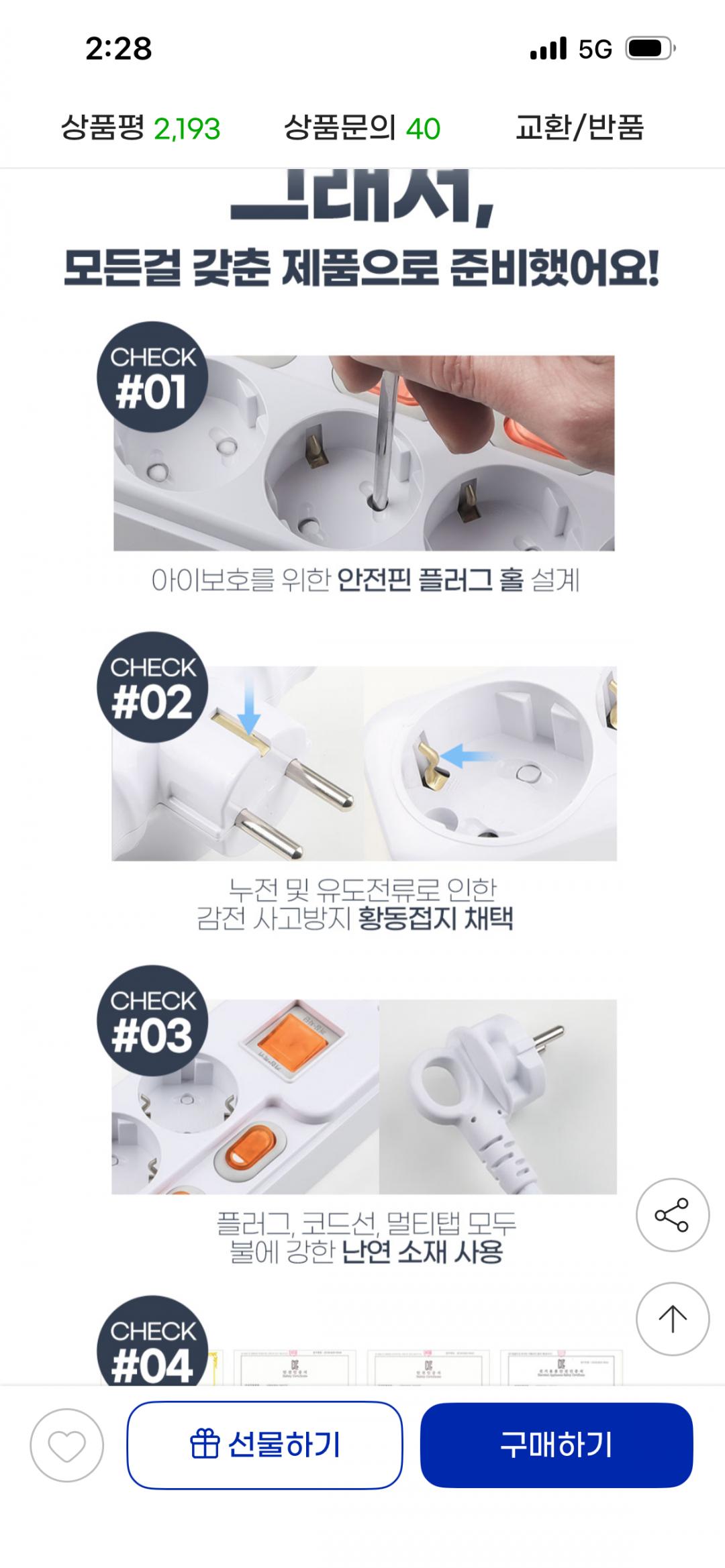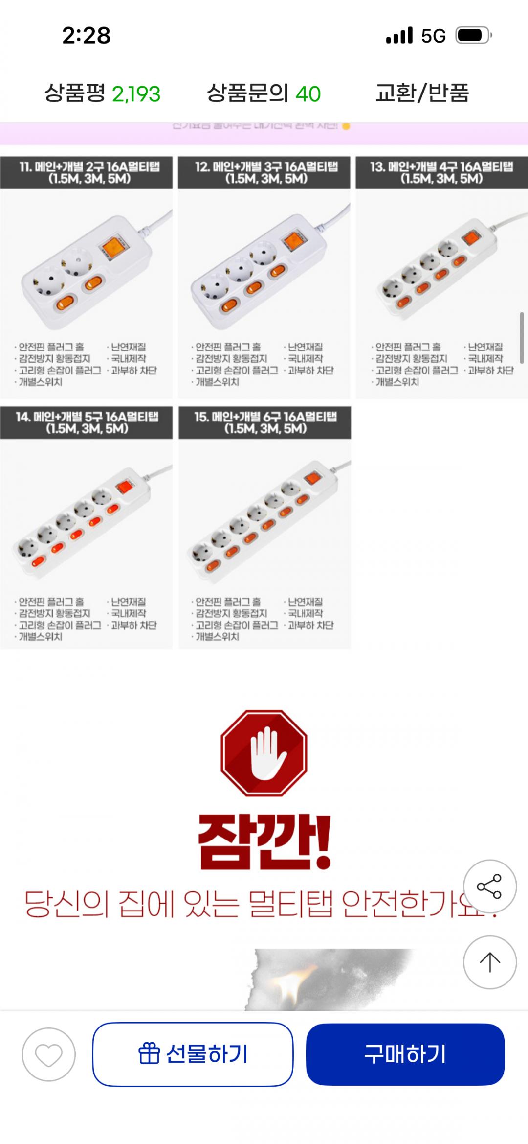 난연소재 멀티탭이고 고용량 사용 가능합니다!