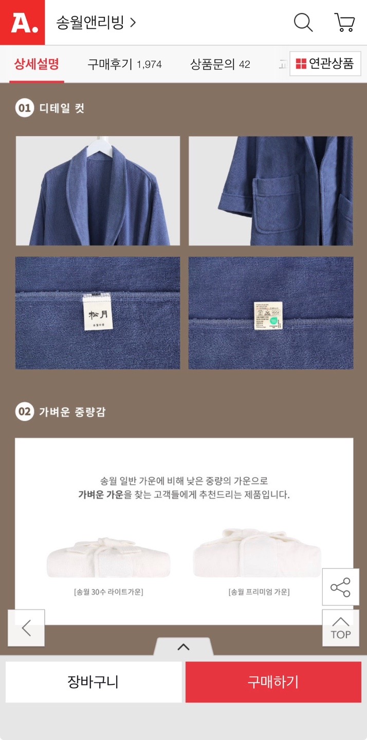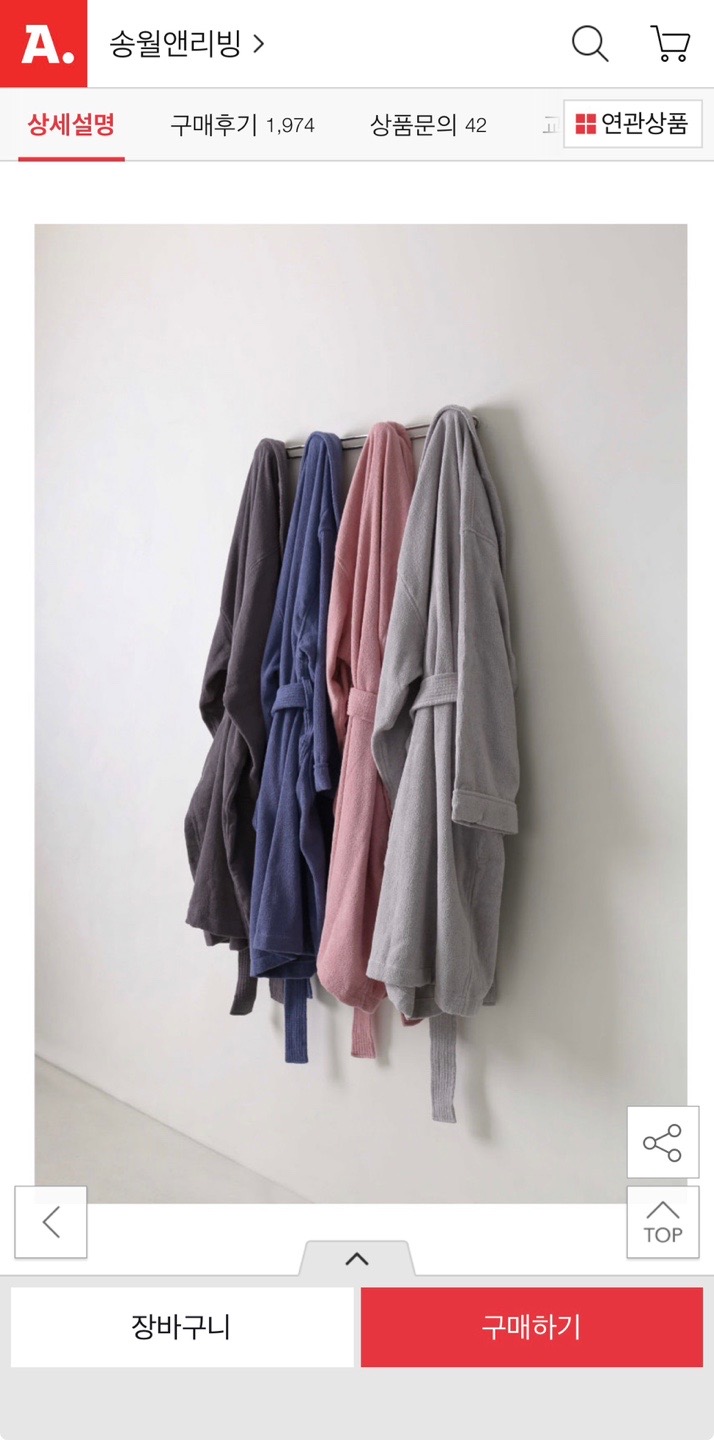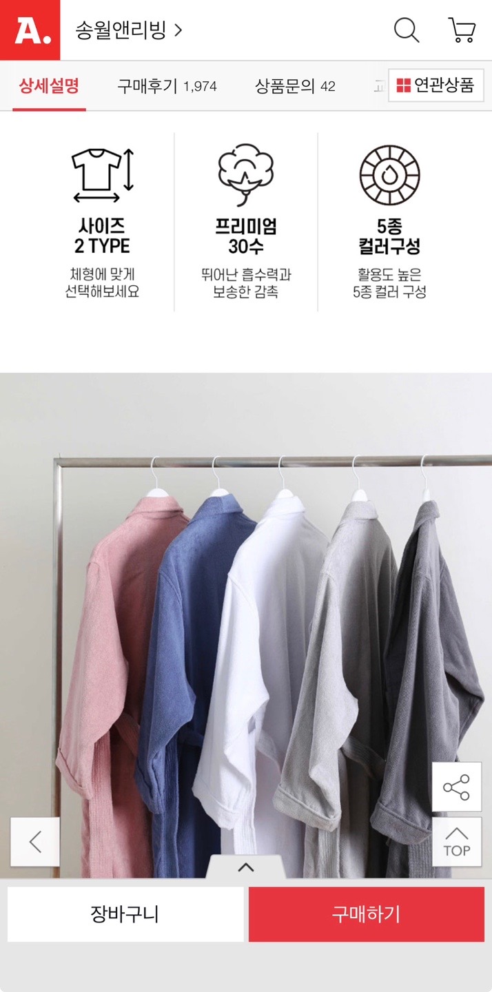 [옥션] 송월 30수 프리미엄 호텔목욕가운 5컬러 (39,500원/무배) > 국내핫딜