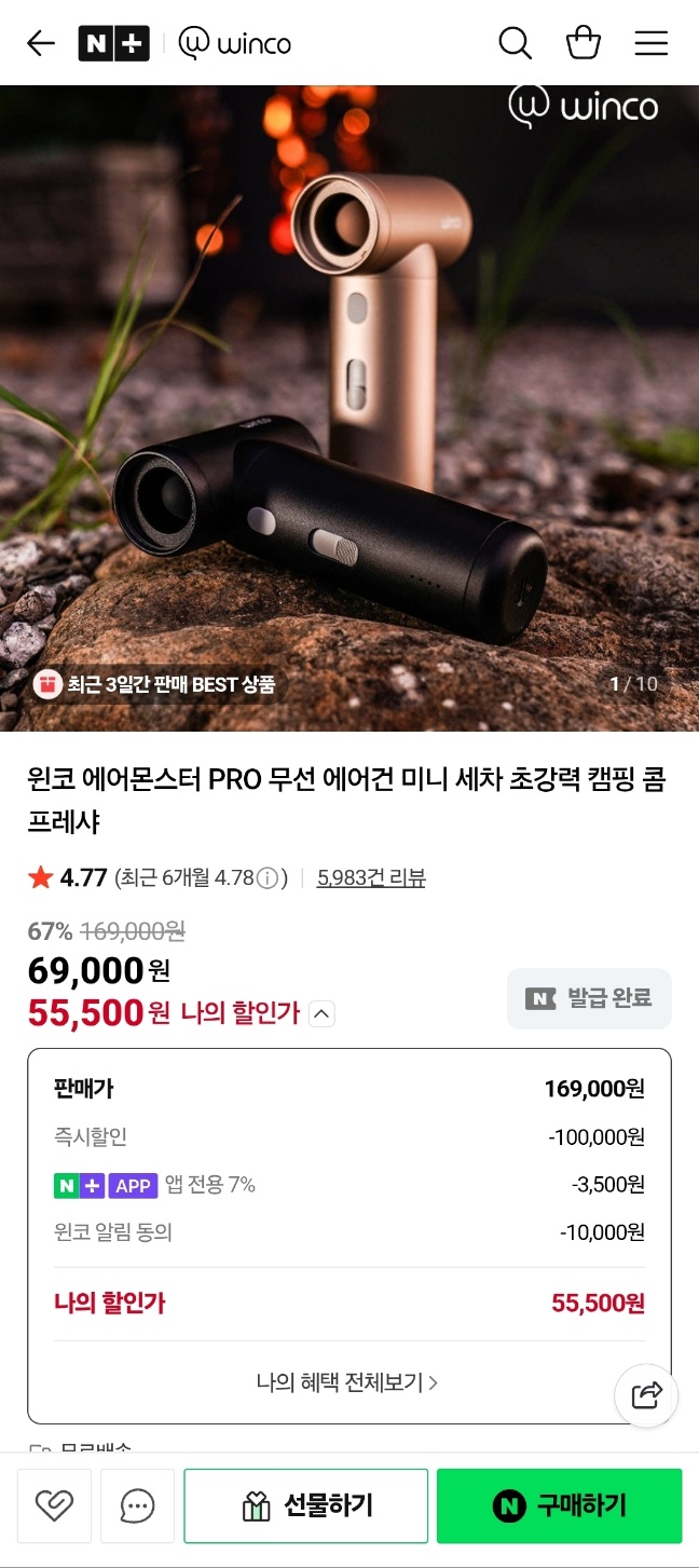 크기도 작고 가벼운데 풍력이 매서워서 다용도 활용하기 좋습니다.