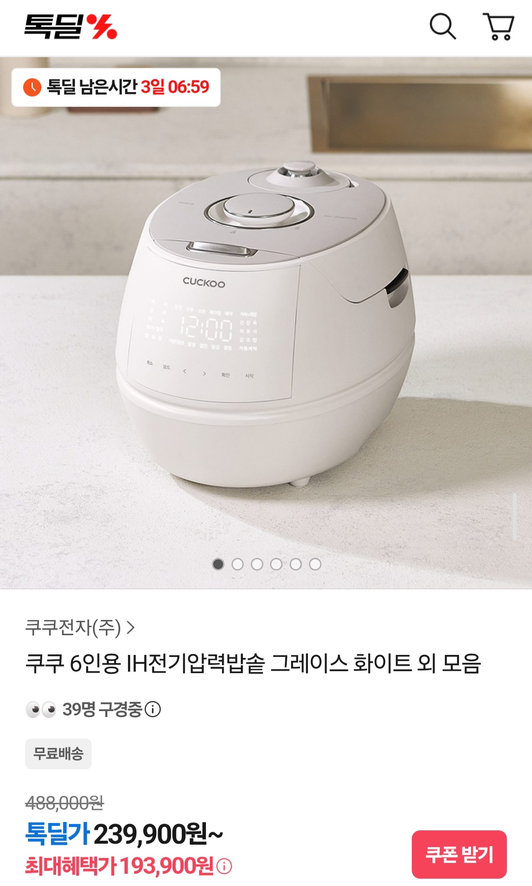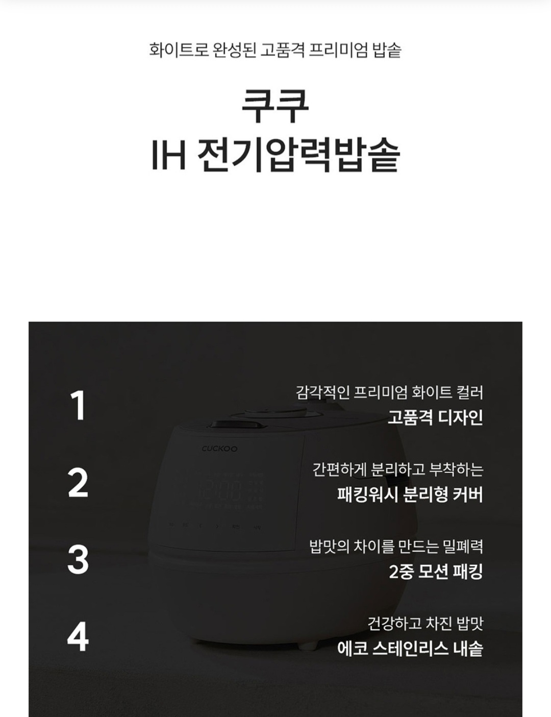 2기압이라 취향맞춰서 찰진 밥 맛있게 취사 가능합니다