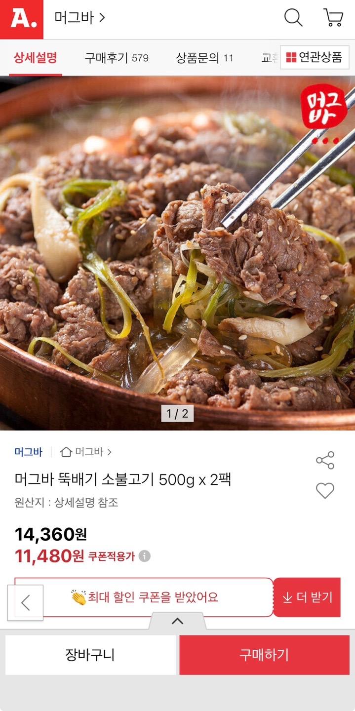 [옥션] 뚝배기 소 불고기 500g 2팩 (11,480원/무배) > 국내핫딜
