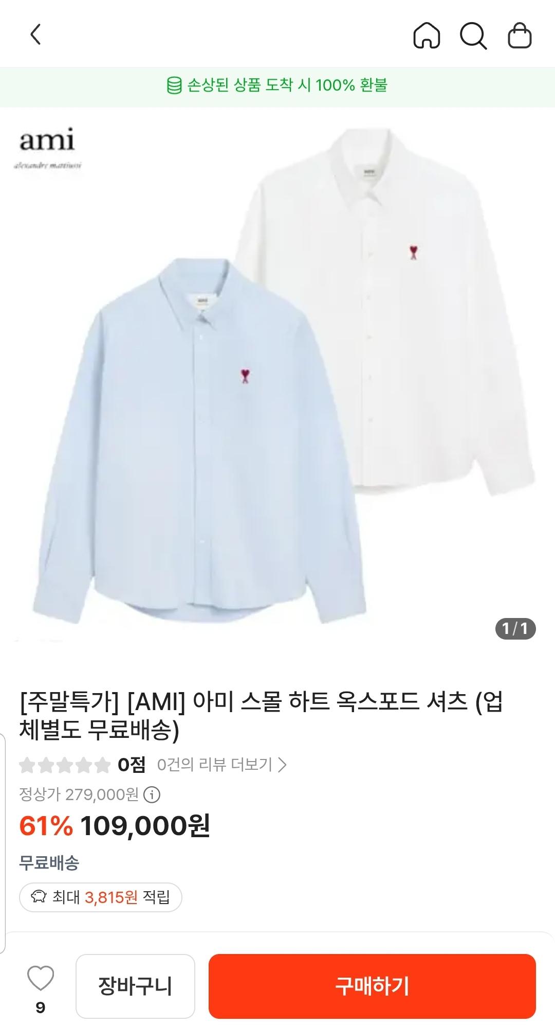 [떠리몰] 아미 스몰하트 옥스포드 셔츠 1벌 (109,000원/무료) > 국내핫딜
