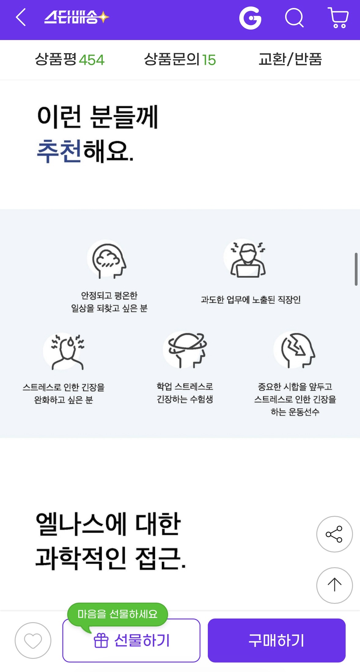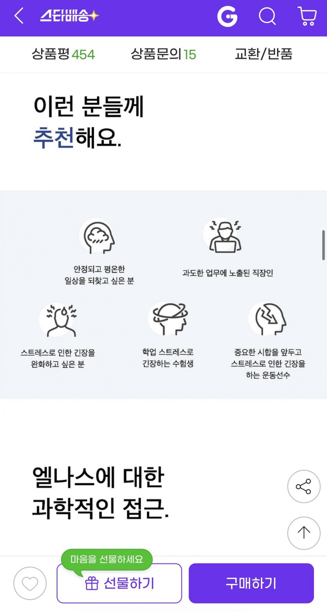 식약처 기능성 인정 제품이라 기본적인 신뢰감이 있고, 스트레스로 인한 긴장 완화에 도움을 줄 수 있다고 합니다.