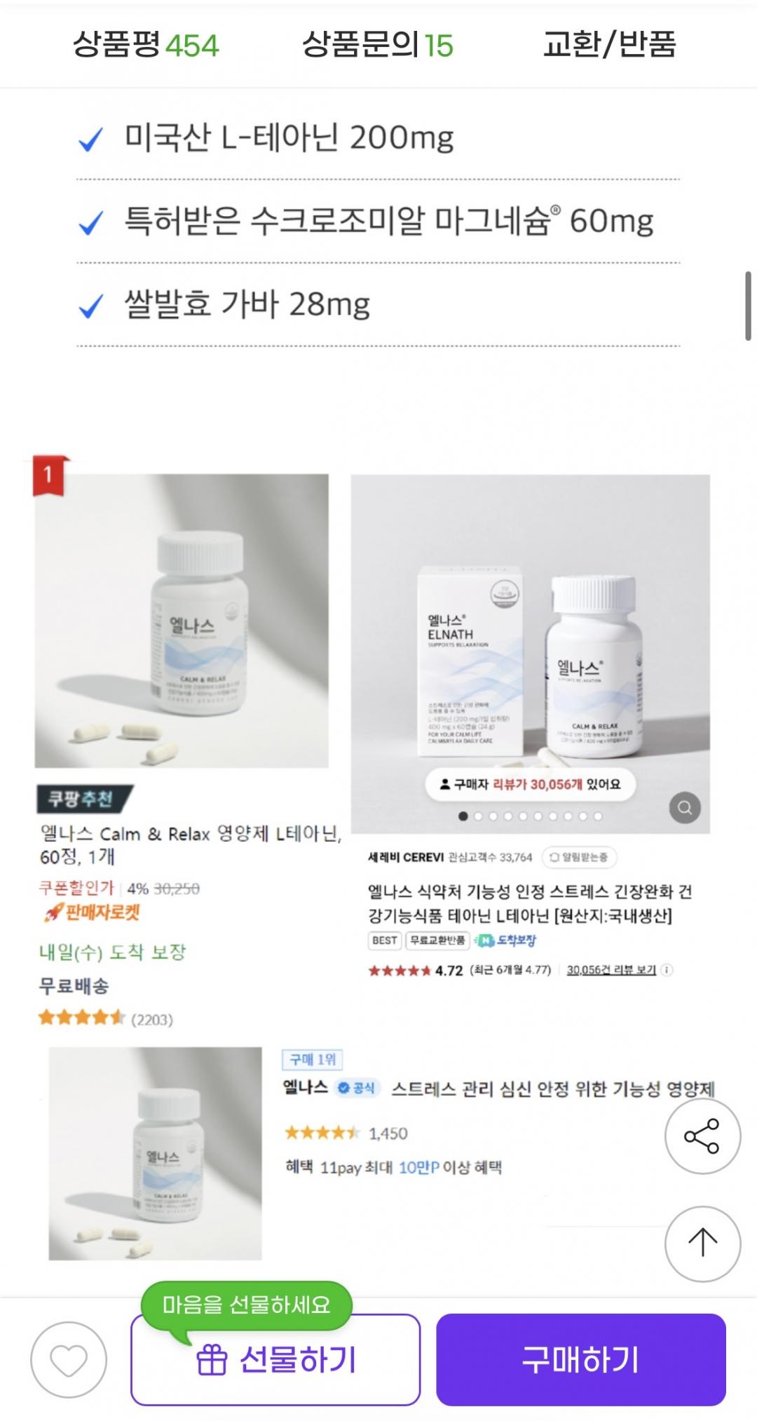 [지마켓] 스트레스 긴장완화 건강기능식품 L-테아닌 (16,520원/무배) > 국내핫딜