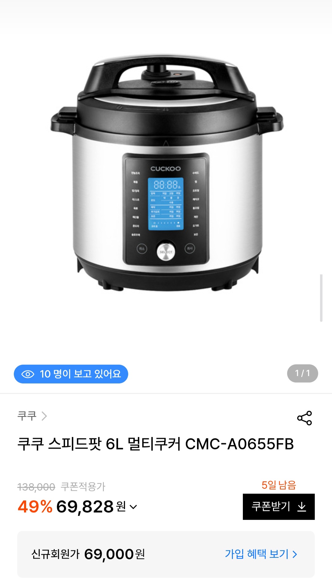 [W컨셉] 쿠쿠 스피드팟 6L 멀티쿠커 (69,000원/무료배송) > 국내핫딜