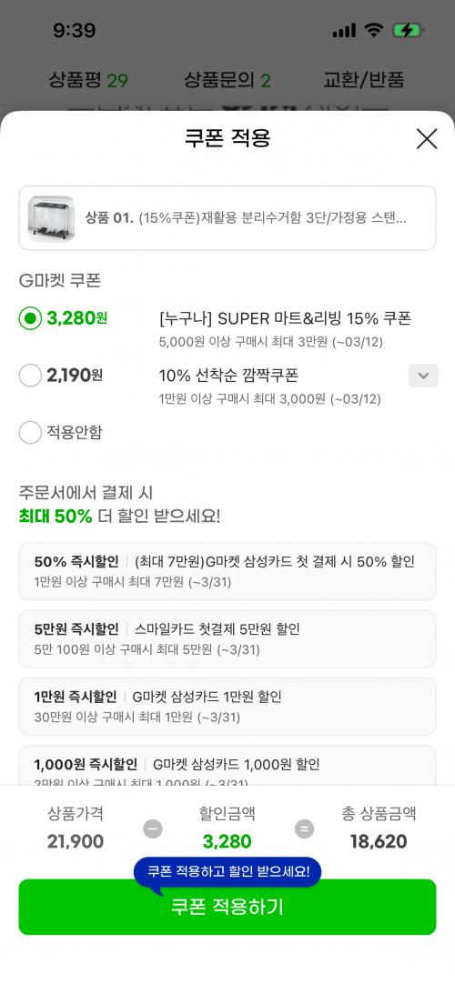 [지마켓] 가정용 스탠드 분리수거 (18,620원/무료)