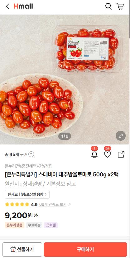 [Hmall] 온누리샵 오픈 세븐딜 스테비아 토마토 2팩 (7,912원/무배) > 국내핫딜