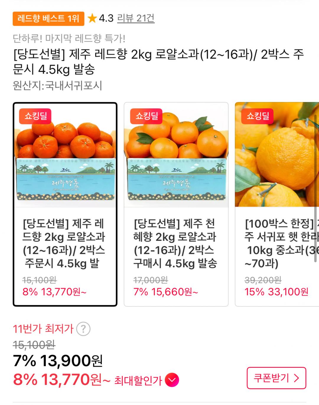 [11번가] 당도선별 제주레드향 2kg 로얄소과 (13,770원/무배) > 국내핫딜