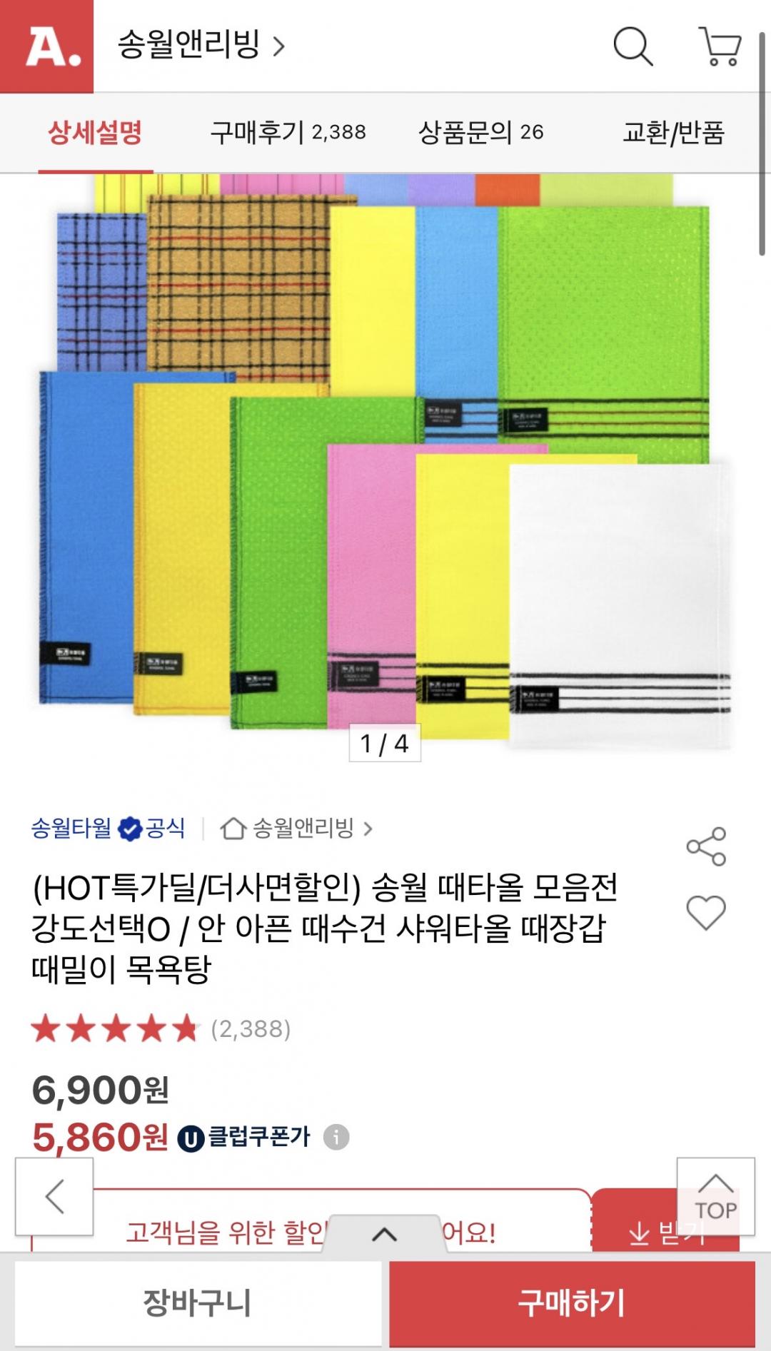 [옥션] 송월 때타올 모음전 (5,860원~/무배) > 국내핫딜