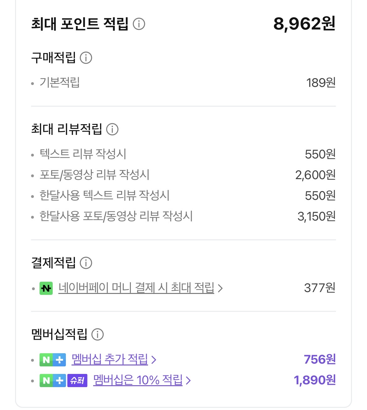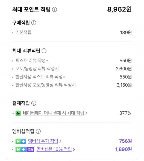 적립금이 이것저것 많아서 금액 좋습니다