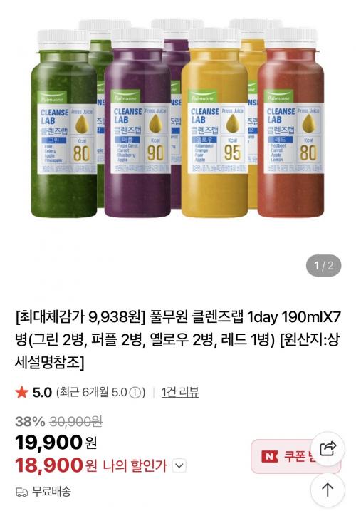 [네이버] 풀무원 클렌즈랩 클랜징 주스 7병 핫딜!(9,940원/무배) > 국내핫딜